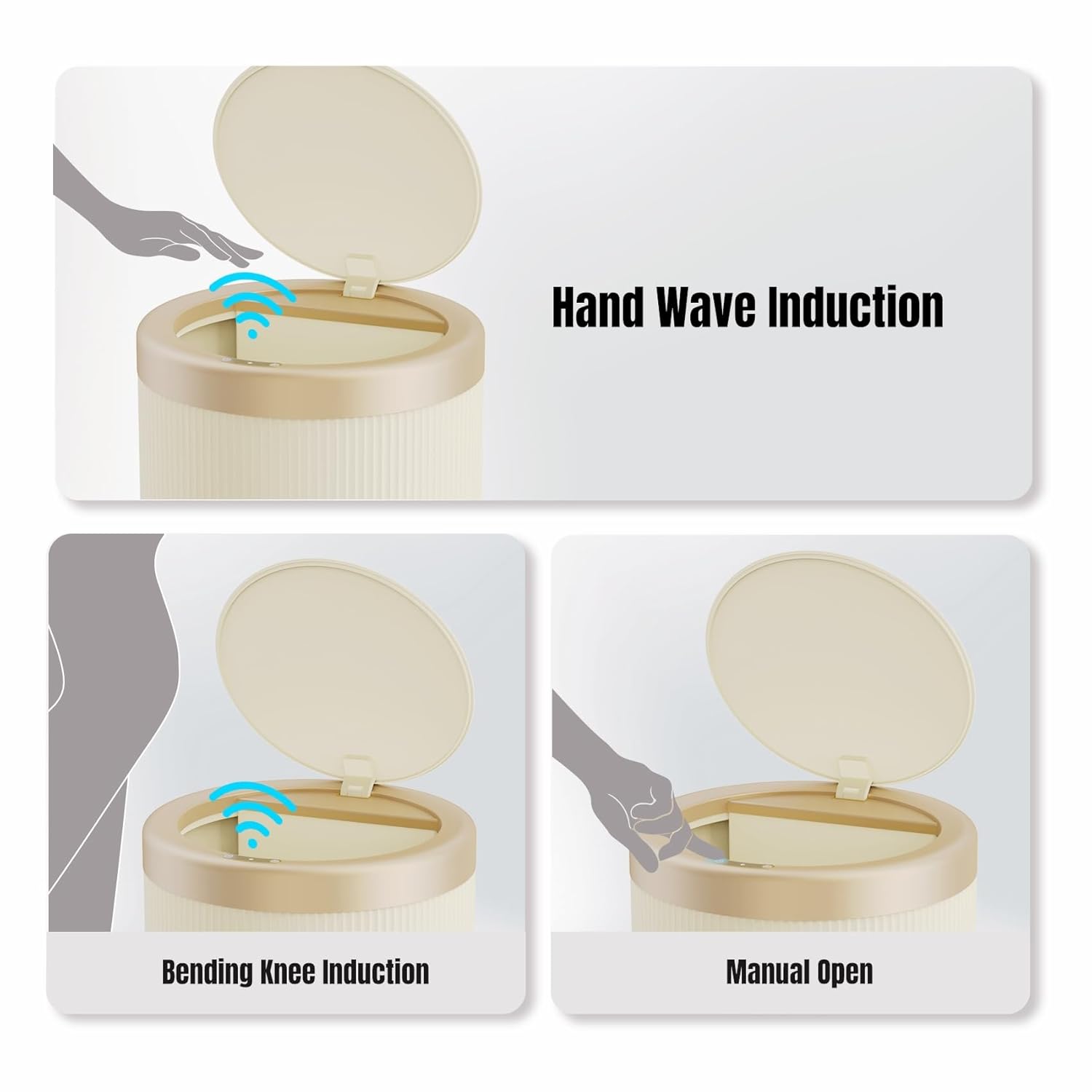 URALFA Automatic Motion Sensor Bathroom Trash Can with Lid, 10.5 Liter / 2.8 Gallon Touchless Trash Bin, Smart Dog Proof Garbage Can, Small Waste Basket for Toilet, Office, Bedroom (Cream White)
