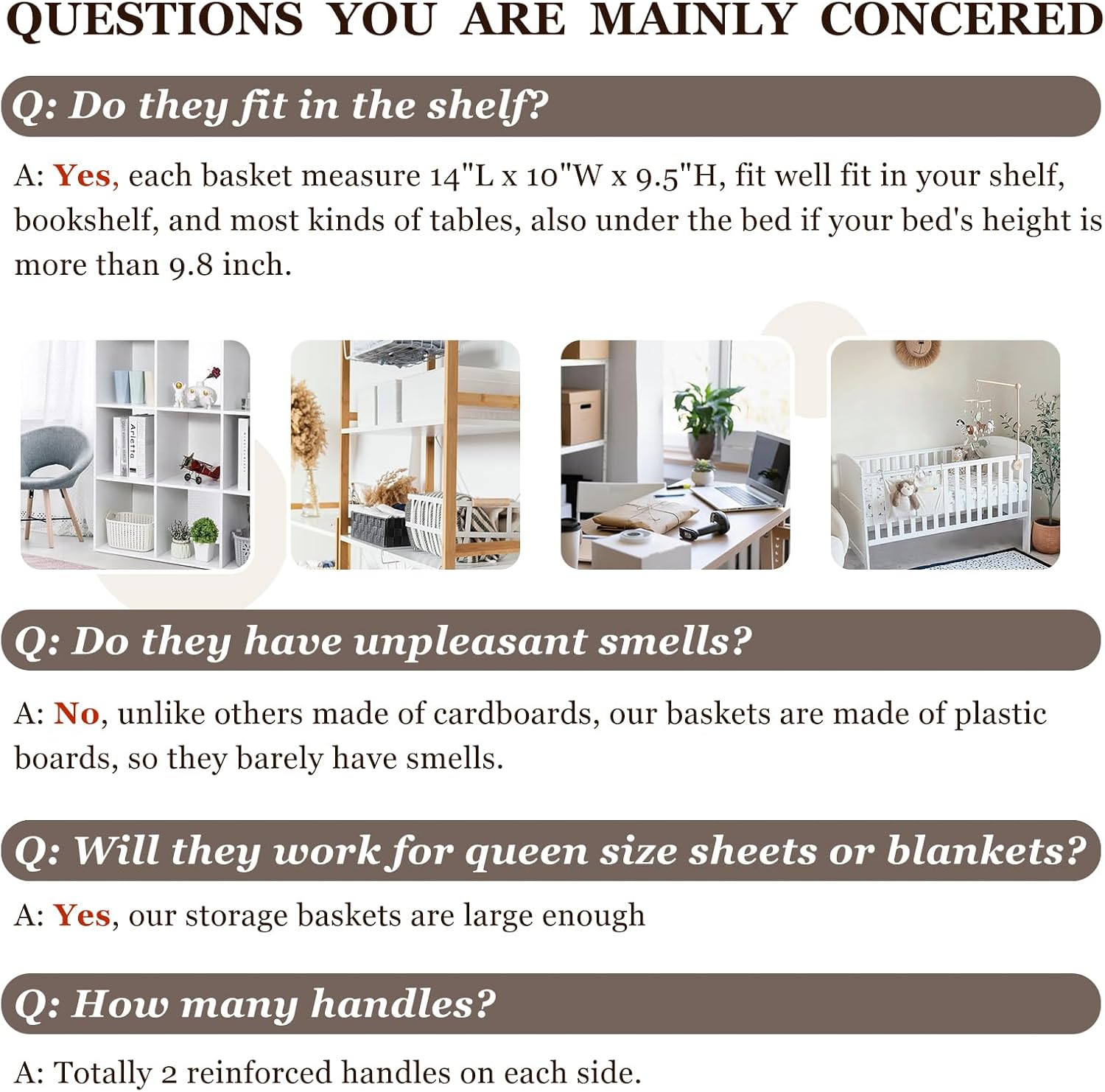 - 【FIT RANGE】 Comes with 6 pack for better value, these cloth storage bins could meet all your family storage needs, also for college dorm, RV, school, baby nursery. Measuring 14” (L) x 10” (W) x 9.5” (H), they could work as storage baskets for shelves, closet storage bins, shelf bins, under bed storage bins, or for changing tables.