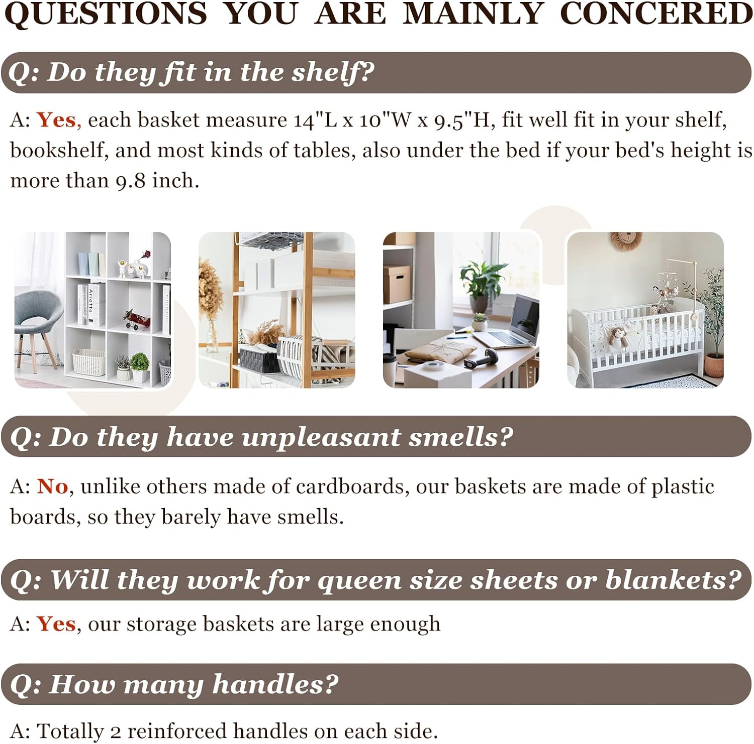 - 【FIT RANGE】 Comes with 4 pack for better value, these cloth storage bins could meet all your family storage needs, also for college dorm, RV, school, baby nursery. Measuring 14” (L) x 10” (W) x 9.5” (H), they could work as storage baskets for shelves, closet storage bins, shelf bins, under bed storage bins, or for changing tables.