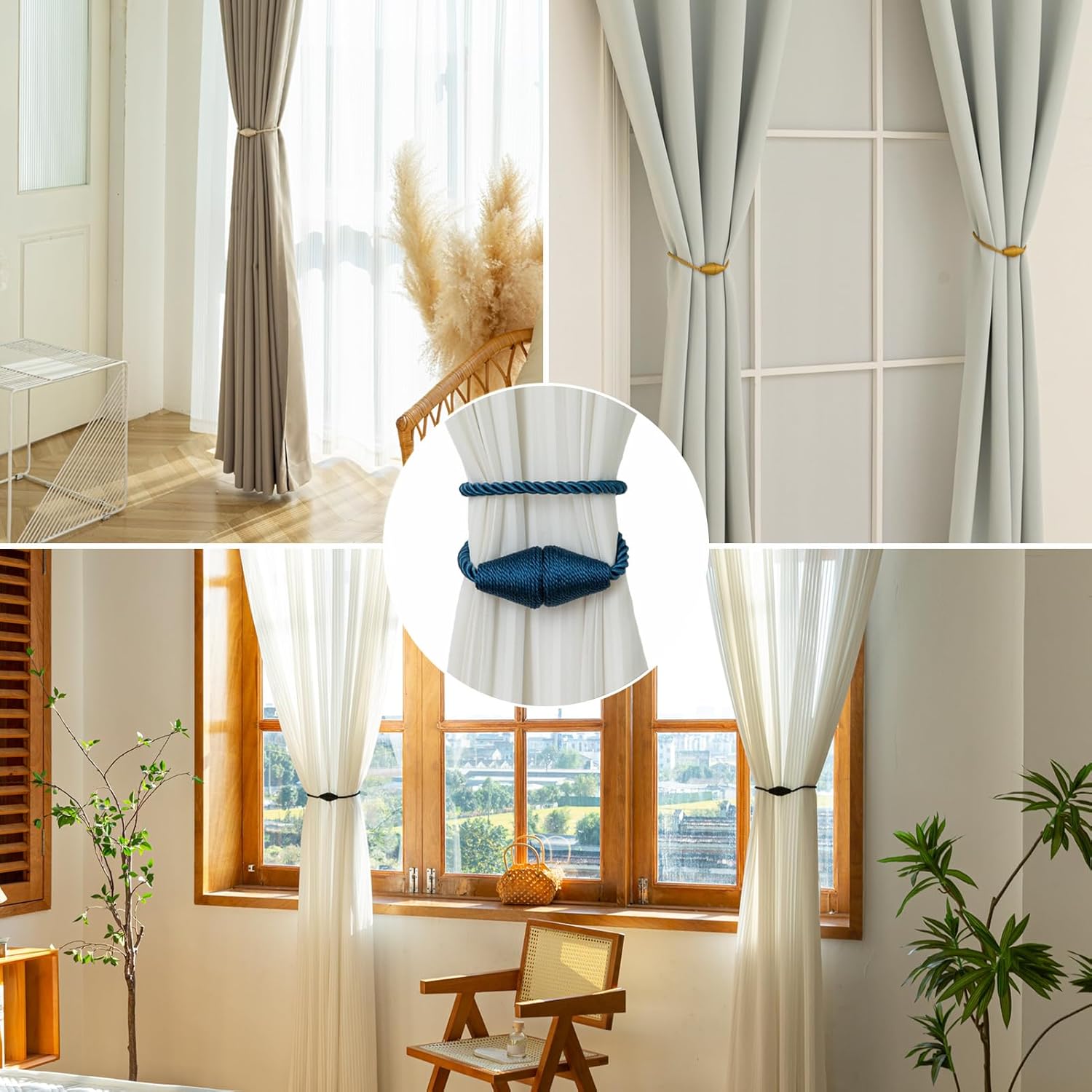 Magnetic Curtain Tiebacks 8 Pack Outdoor Rope Curtain Tie Backs Decorative Window Treatment Holdbacks for Home Decorative Curtain, Blue