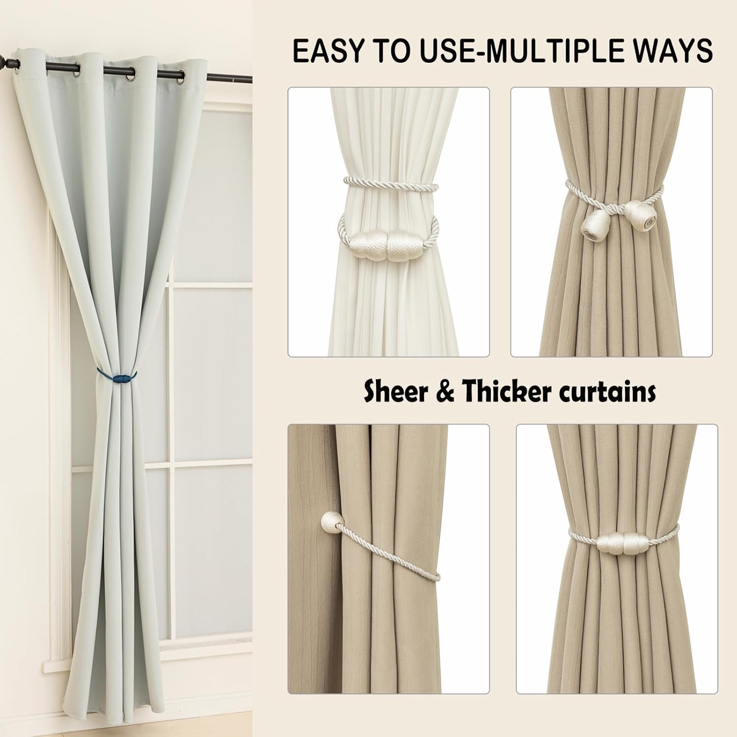 Magnetic Curtain Tiebacks Rope Tie Backs 2 Pack Curtains Holders for Drapes Decorative Window Holdbacks, White