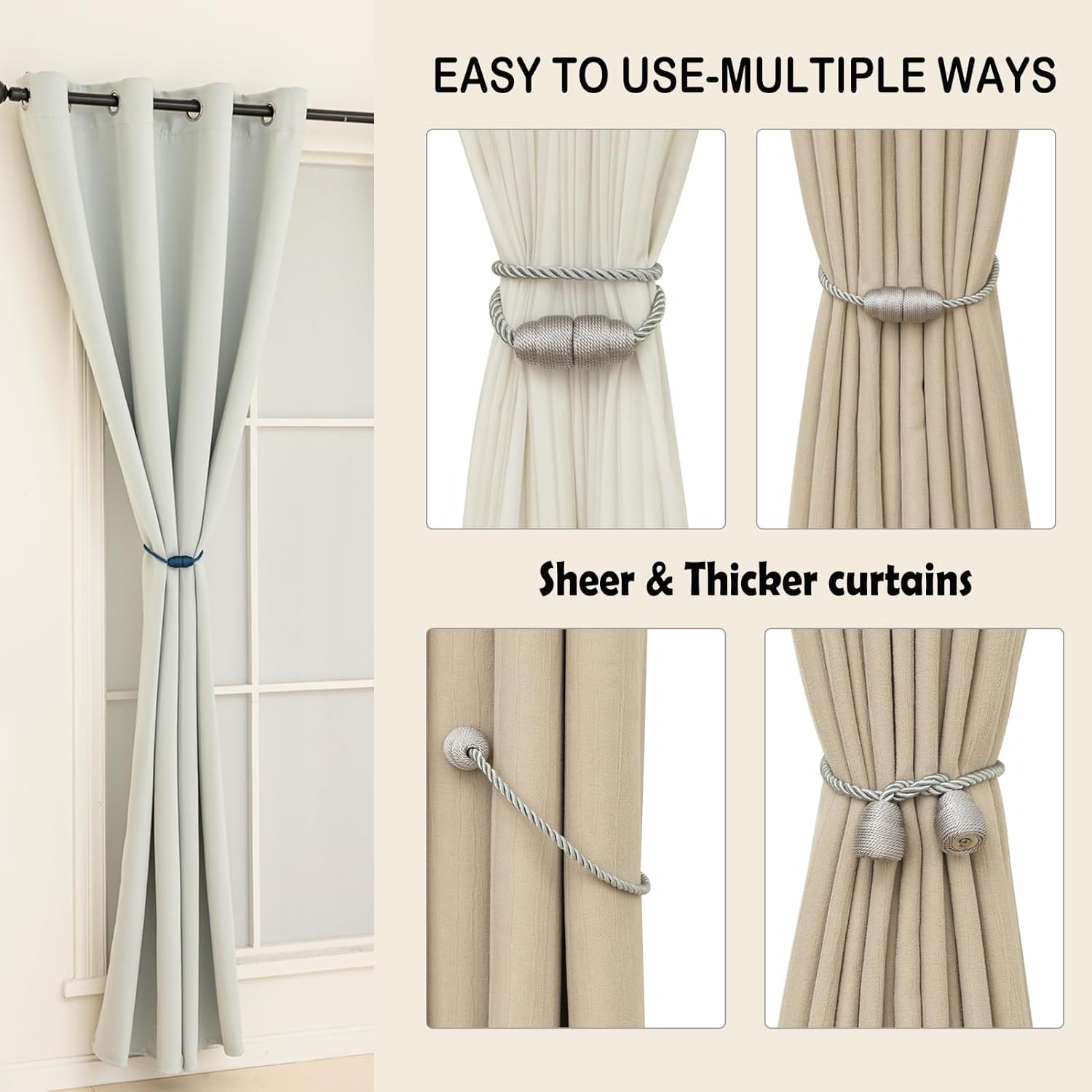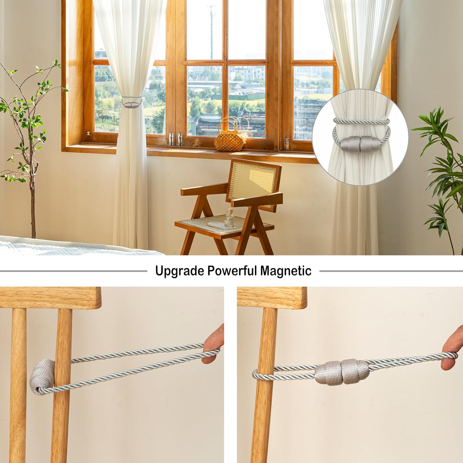 Magnetic Curtain Tiebacks Rope Curtain Tie Backs for Curtains 6 Pack Curtain Holders for Drapes Decorative Window Curtain Holdbacks, Grey