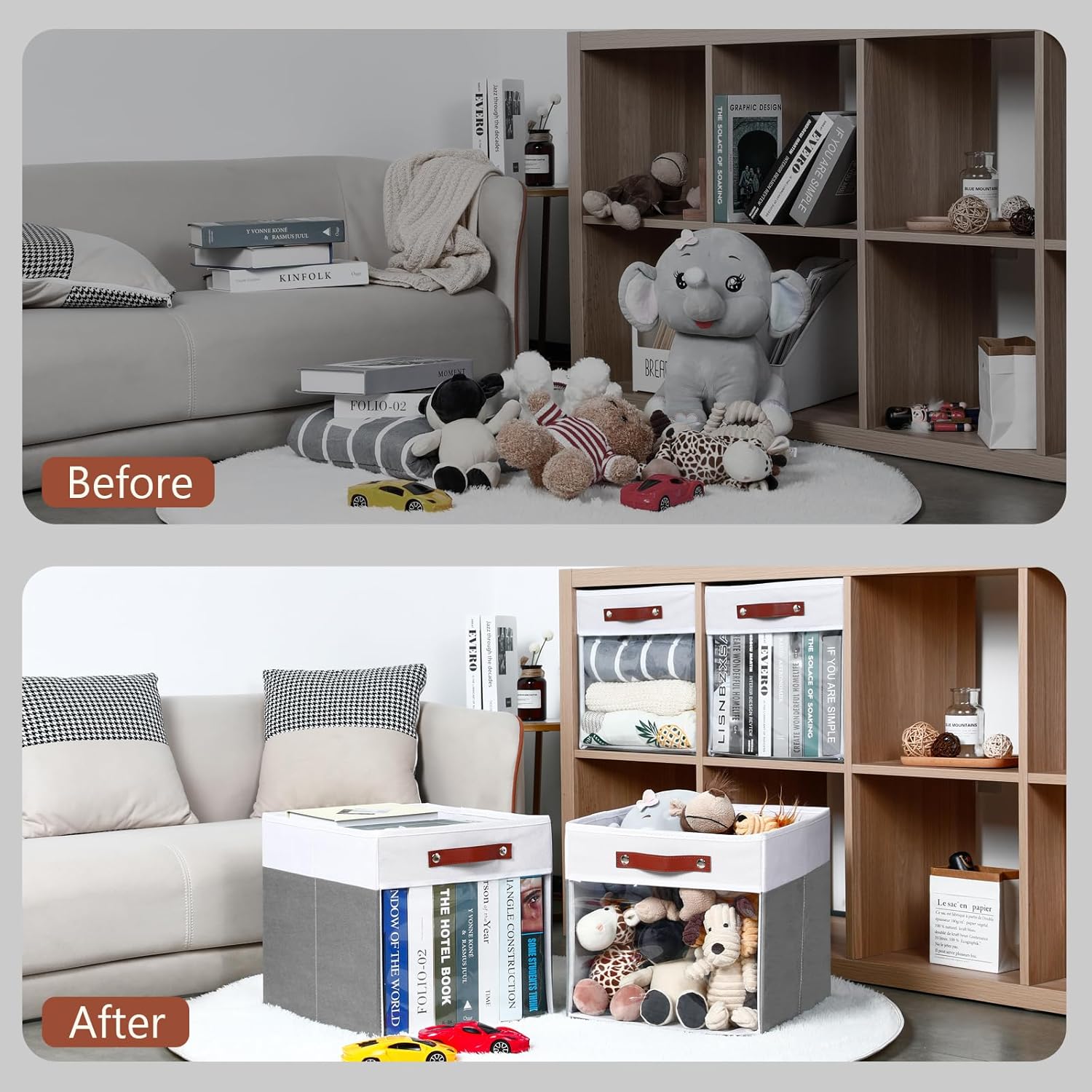 - 【Size Specification】Each clear storage cube bins is 13x15x13 inches, and the storage cubes 13x13x15 set includes 4 boxes, giving you ample storage space. You can easily categorize your belongings based on your habits, and this fabric cubby storage organizer bins will assist you in creating a more organized home.