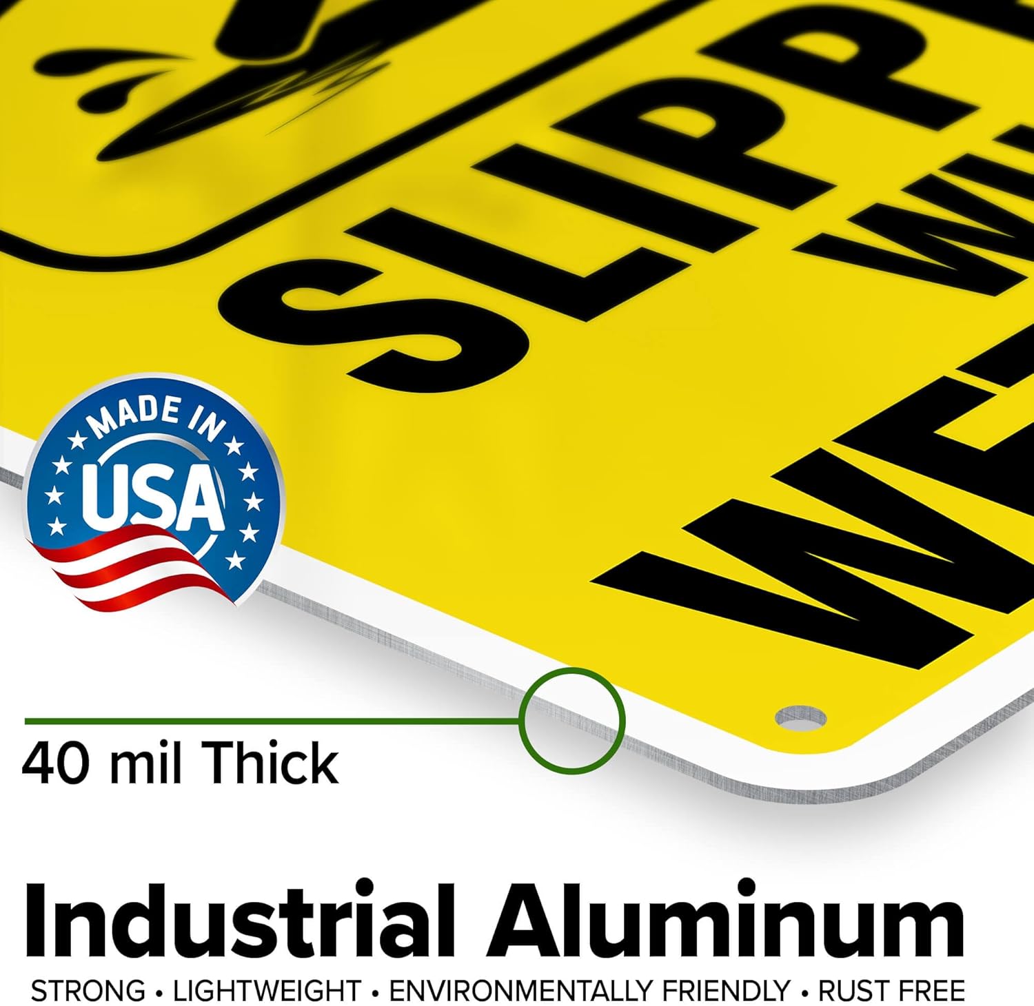 Caution Slippery When Wet Sign or ICY Sign, 10"x14" 0.40 Aluminum, Fade Resistance, Indoor/Outdoor Use, USA MADE By My Sign Center