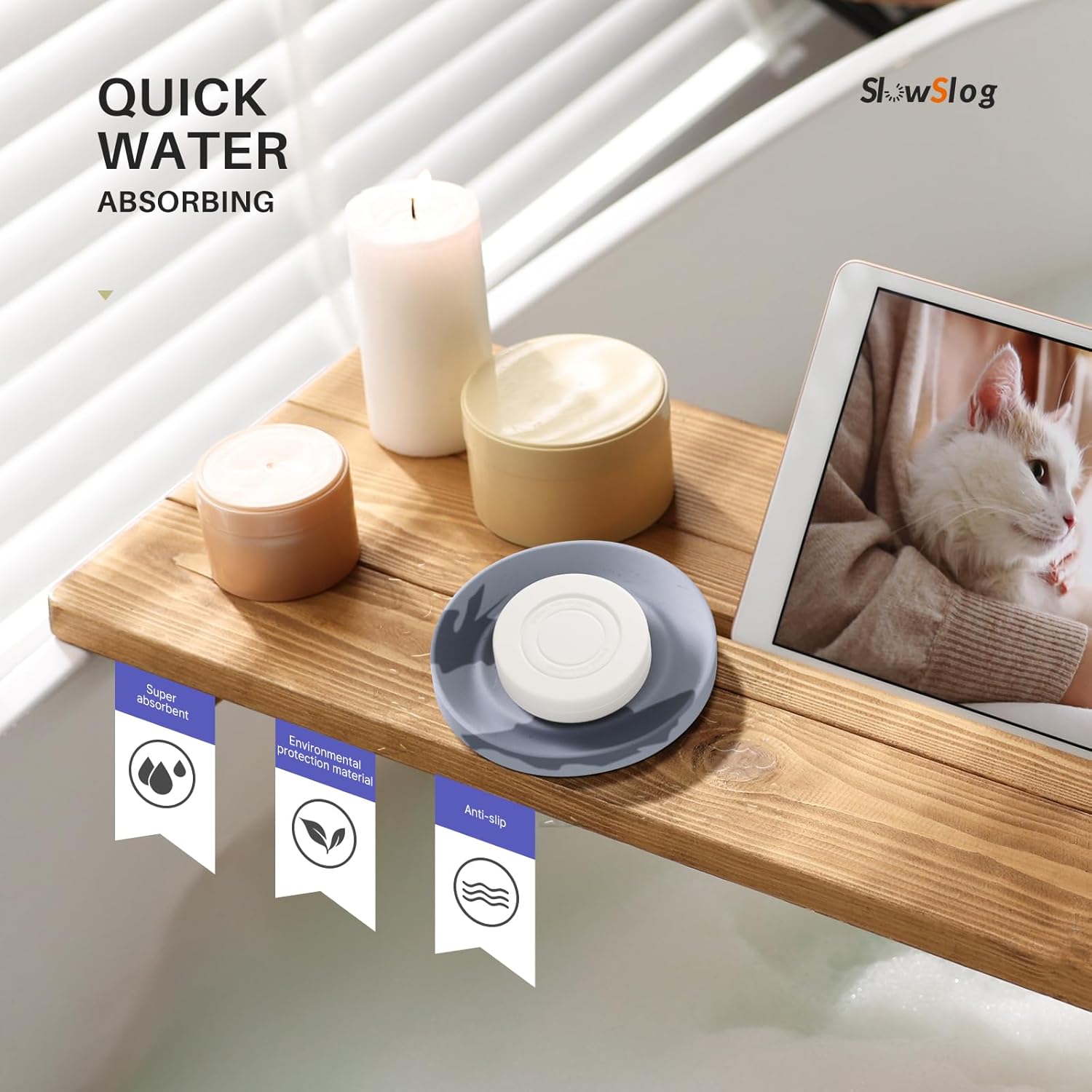 - Super Absorbent:Our water absorbent diatomite soap dish made from natural diatom mud and plant fiber without awful smell, with millions of tiny pores inside diatomite, it has amazing water absorption ability. This diatomite soap dish can absorb water within minutes and dry quickly. Keep your table/countertop surface dry and extend the lifespan of your soap