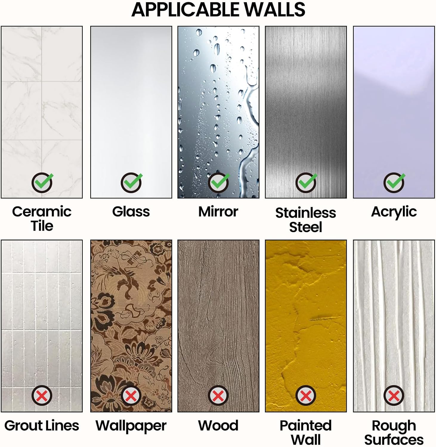 - [Troubleshooting Tips]: If problems occur during installation, how can I quickly determine whether the problem is with the product or with the wall surface? Ensure that the suction cup is clean and dry, then install the shower mirror on a smooth, clean and dry glass surface. If the sponge holder can be installed well to the glass, this means that the initial installation wall is not suitable for the suction cups. If the sponge holder doesn't work on the glass, it is possible that the protective cover has come off, caused the suction cups to be dusty, so you can clean it and use it again or contact customer service