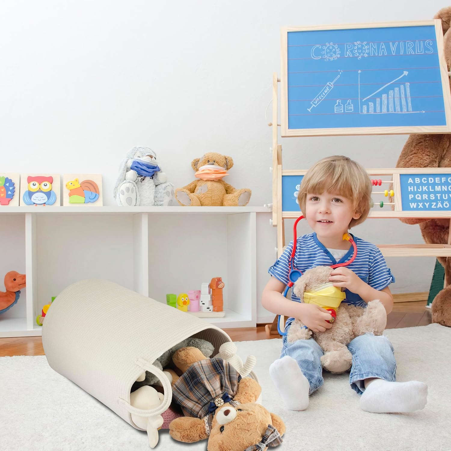 Cotton Rope Laundry Basket Hamper for Clothes Woven Storage Basket for Living Room Bedroom Boho Tall Rope Baskets for Blanket Toys Pillow Towels Baby Nursery Hamper Bin Large white