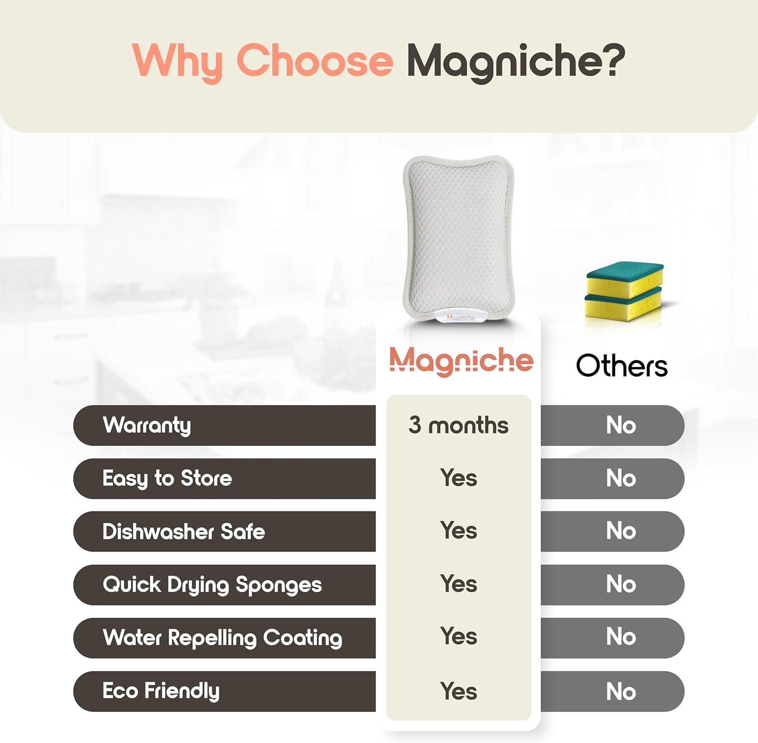 - π¦π ππ₯π§ π¦ππ‘π π’π₯πππ‘ππππ§ππ’π‘: Upgrade your kitchen with the Magniche magnetic sponge holder for kitchen sink. This magnetic sponge holder securely holds your dish sponge or kitchen scrubber, keeping your counter dry and clutter-free with easy sink access and fast drying.
