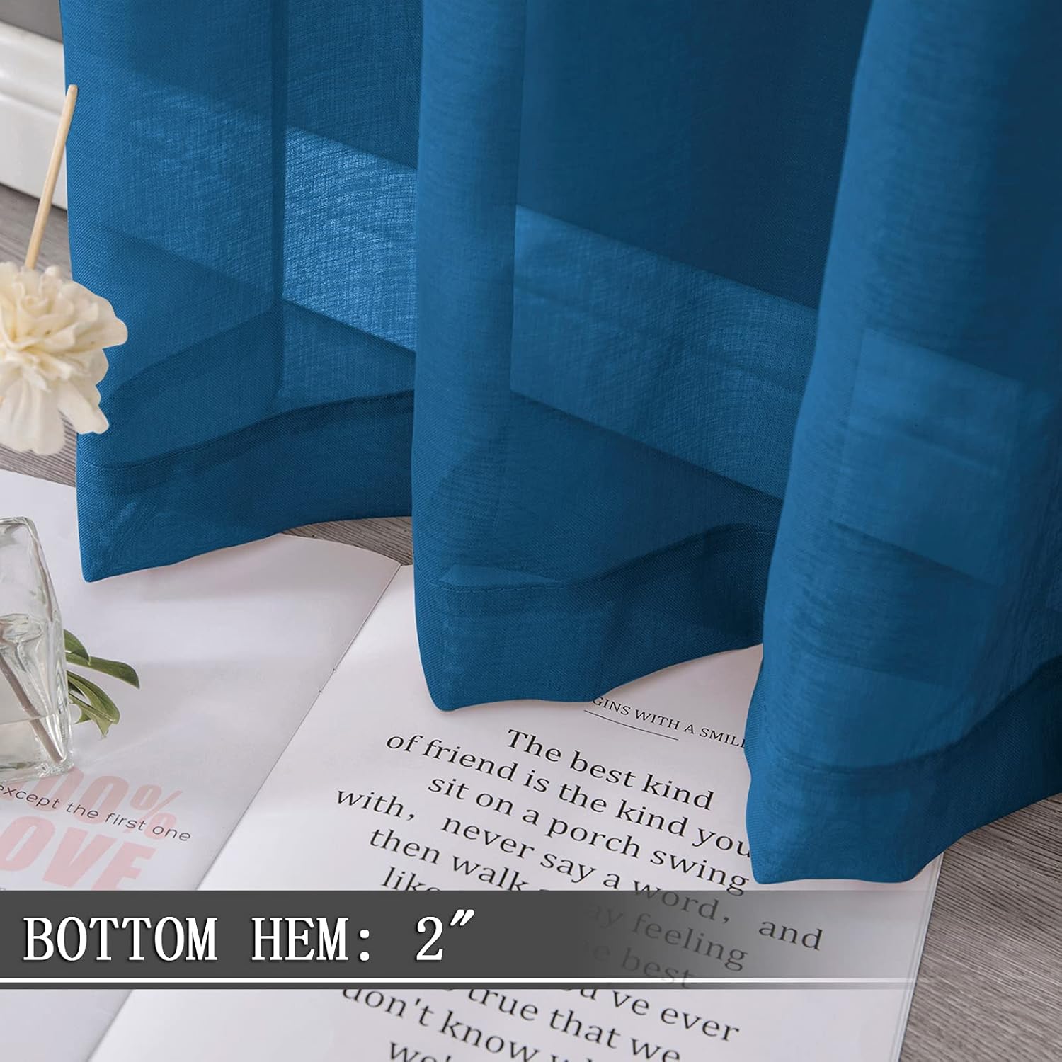 Tollpiz Sheer Curtains Living Room Linen Textured Curtain Sheers Light Filtering Voile Rod Pocket Curtains for Bedroom, 38 x 63 inches Long, Classic Blue, Set of 2 Panels