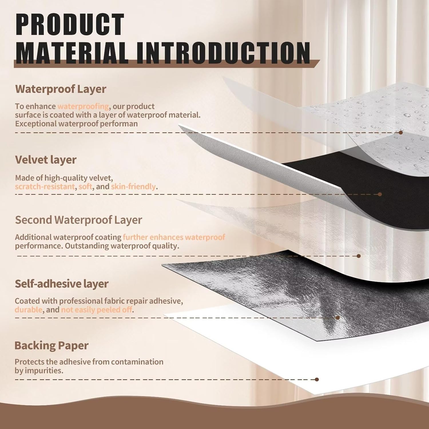 - Premium Material: The front of this microfiber patch features high-quality velvet, backed by professional fabric adhesive. Two layers of waterproof protection.Soft, skin-friendly, waterproof, wear-resistant, scratch-resistant, and health-conscious.