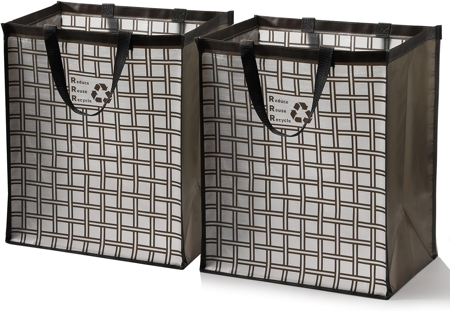 - LIGHTWEIGHT AND STURDY: Recycling bin can is made of waterproof polypropylene, sturdy double stitch handle straps to ensure durable. They stand up on their own and easy to dispose of.