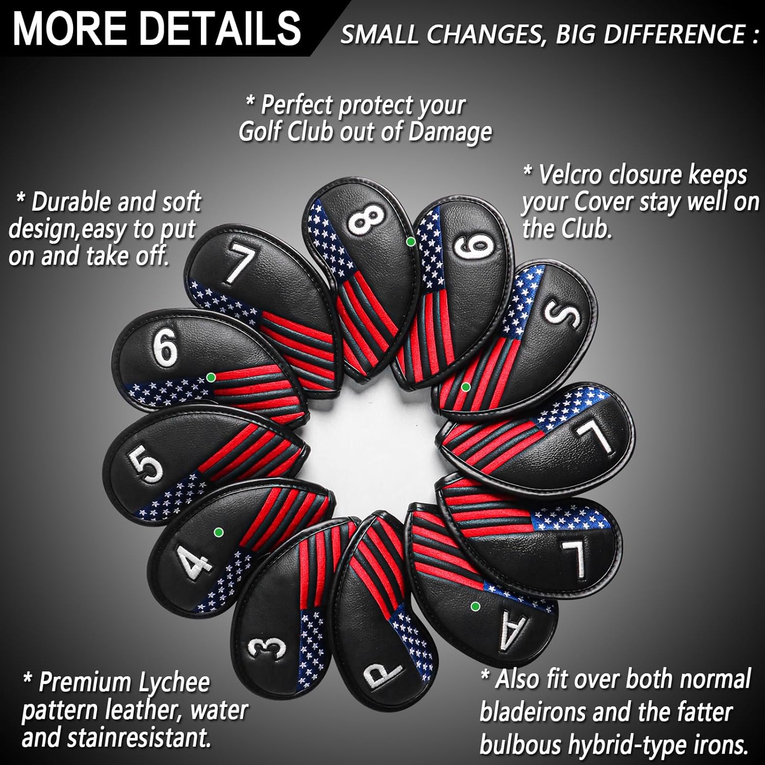 - Keep Your Irons Safety Anywhere: These Premium Golf Head Covers are a Must-have for Every Golfer who Values Protection and Style. Made from High-quality Synthetic Leather, They’re Water-resistant and Provide a Snug Club Fit to Shield Your Irons from Scratches, Dings, and Wear. Designed for Both Daily Play and Travel Convenience, They Add Sleek Aesthetic Appeal to Your Golf Bag Organization.