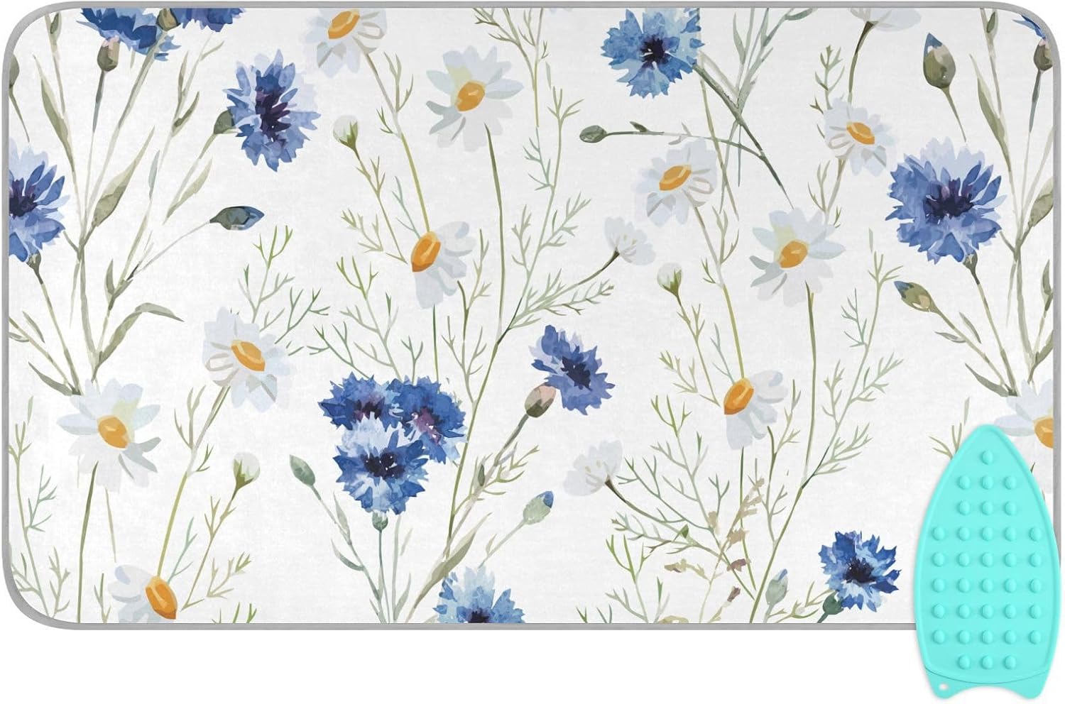 Ironing Mat Thickened Ironing Blanket Travel Portable Double-Side Using Ironing Pad Travel Isolate Heat Pad Cover for Washer Dryer Table Top Countertop (27.6x47.2in) Daisy