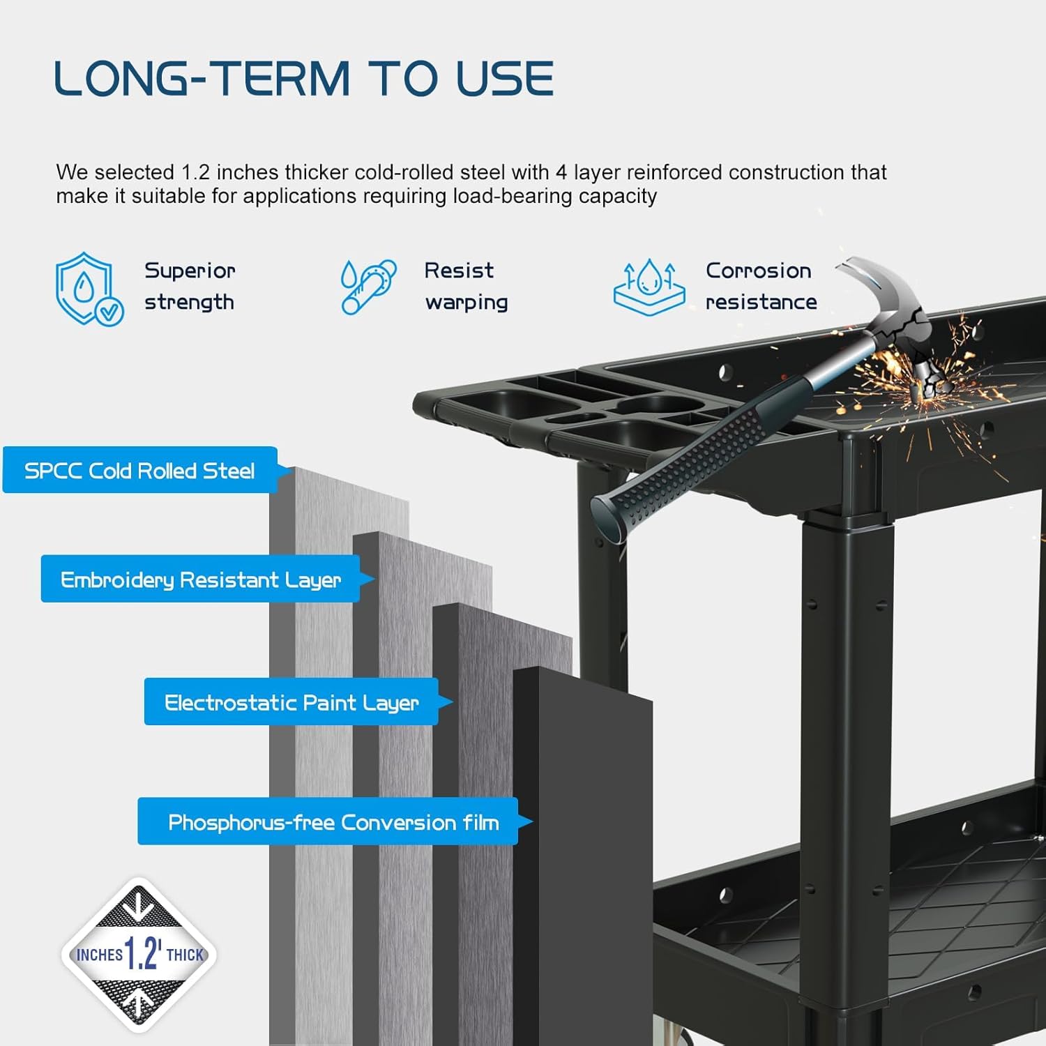 - 【Excellent Storage Capacity】Outstanding 1000 lbs load capacity, large storage space, and multiple storage configurations for more reasonable storage of items of all sizes ensure you can move more goods at once and increase work efficiency. And every cart is professionally load tested before it leaves the factory.