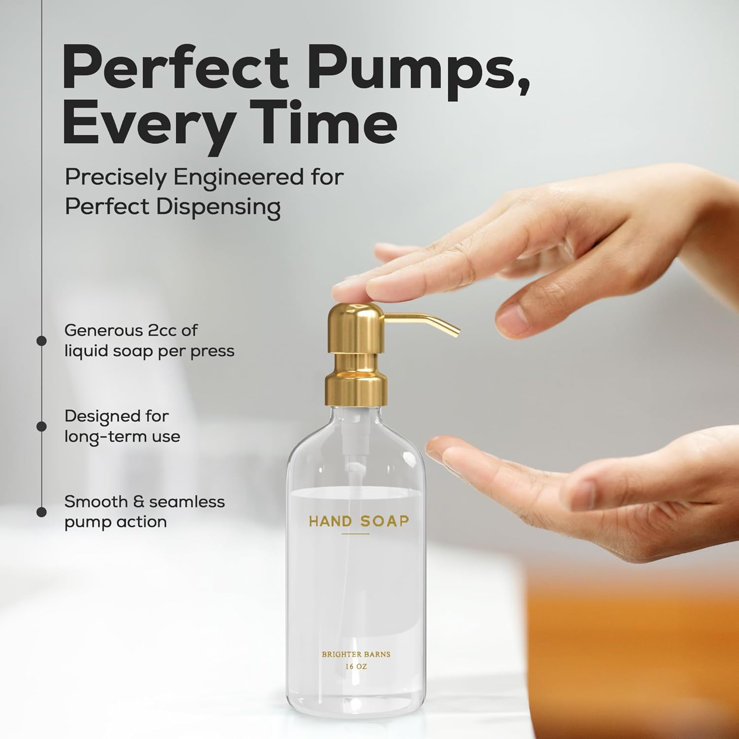 - AMERICAN DESIGN, UNCOMPROMISING QUALITY - Crafted with meticulous attention to detail, our glass gold soap dispenser set features 2 fortified 16oz glass bottles along with a set of corrosion-proof 304G stainless steel silver pumps. All designed in the USA to provide unbeatable quality and enduring style that you can trust.