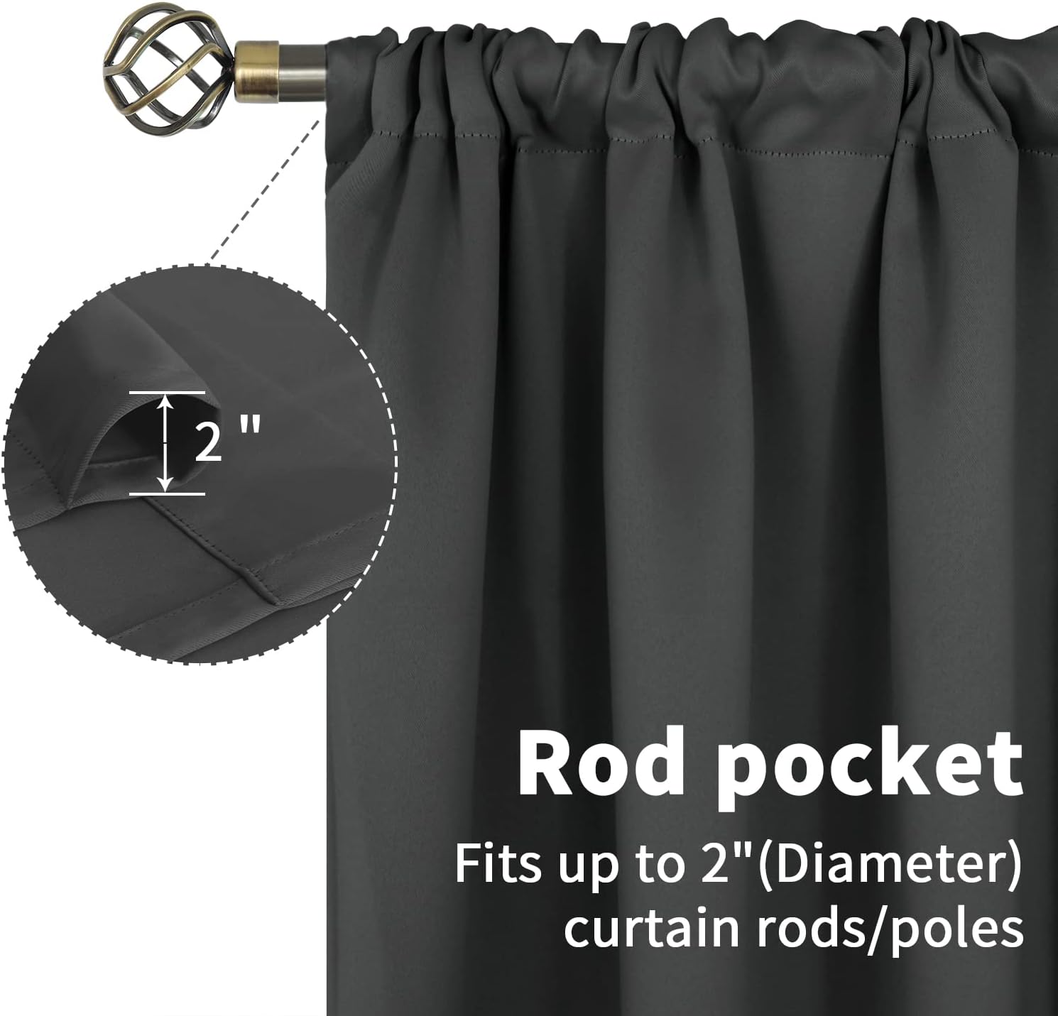 - Rod Pocket Construction: Our block out curtains are with 3 inches rod pocket on top, fits most standard rods and makes the maximize coverage of your windows with no gap. Protect your privacy.