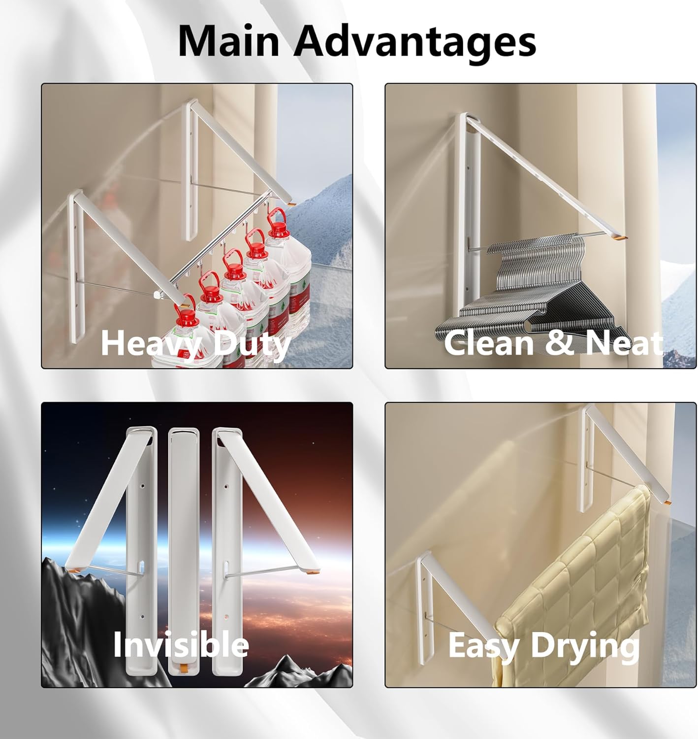 - 【Foldable & Retractable Design】: The coat hanger racks are specially designed to save space. If there are not so many space to hanging clothes, it will be your good choice. When not in use, it can fold to achieve invisible effect and never become mess. Suit for Laundry room, Balcony, Bathroom, Bedroom, Closet.etc.