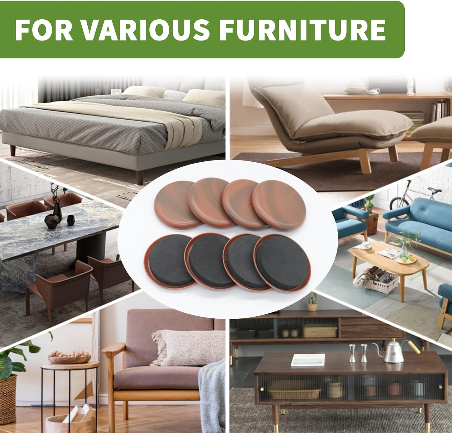 Furniture Sliders for Carpet 8 PCS - 2 1/2 inch Furniture Moving Slider Chair Legs Floors Protectors Furniture Movers Sliders – Move Your Furniture Easy & Safely(for Carpet) Brown Coffee
