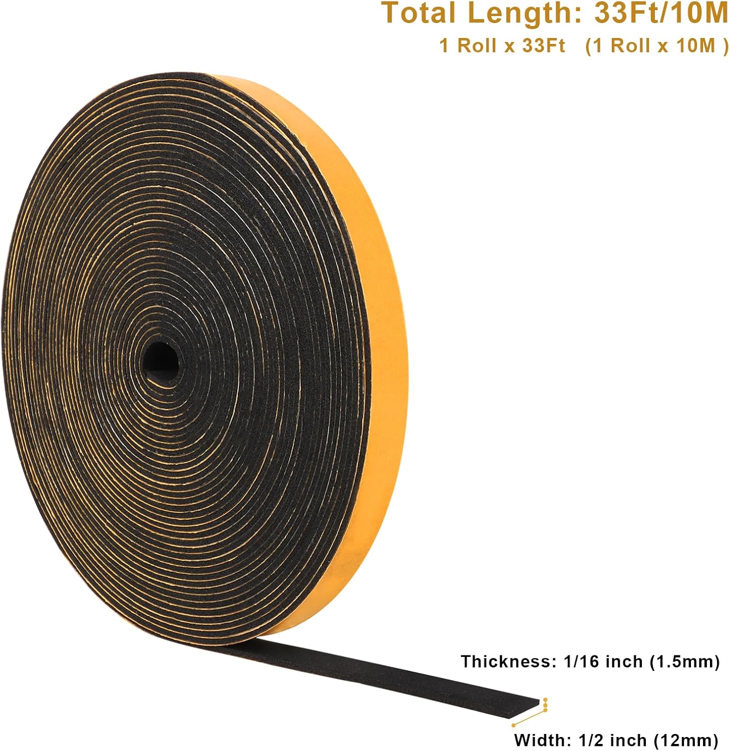 Weather Stripping Soundproof 1/2 in x 1/16 in, High Density Door Seal Strip, Weatherstrip Closed Cell Foam Insulation Tape for Window Storm Door, 1 Roll 33Ft