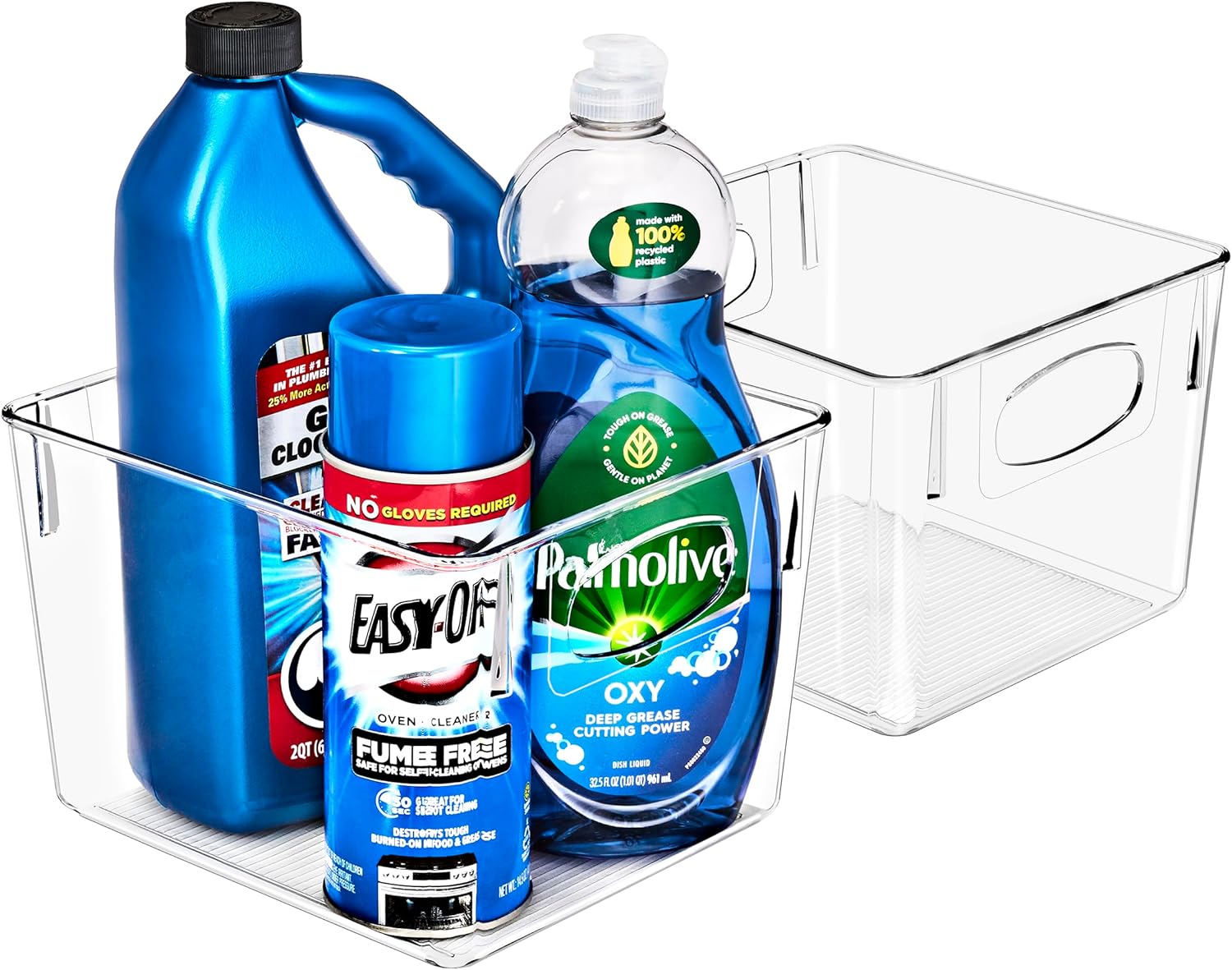 - Clear Cleaning Supplies Organizer: The Sorbus Clear Bins for Organizing make it convenient and easy to organize household essentials - Perfect for storing cleaning supplies under the sink - Store and organize items in the kitchen, bathroom, pantry, office closet, and more