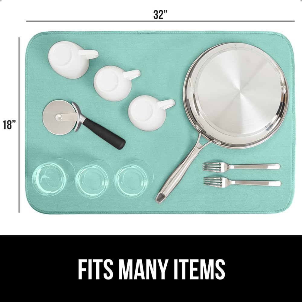 GORILLA GRIP Ultra Water Absorbent Microfiber Dish Drying Mat, 18x32, Quick Dry Thick Mesh, Slip Resistant Pad for Sink Dishes or Under Rack, Kitchen Counter Accessories, Machine Wash Mats, Mint