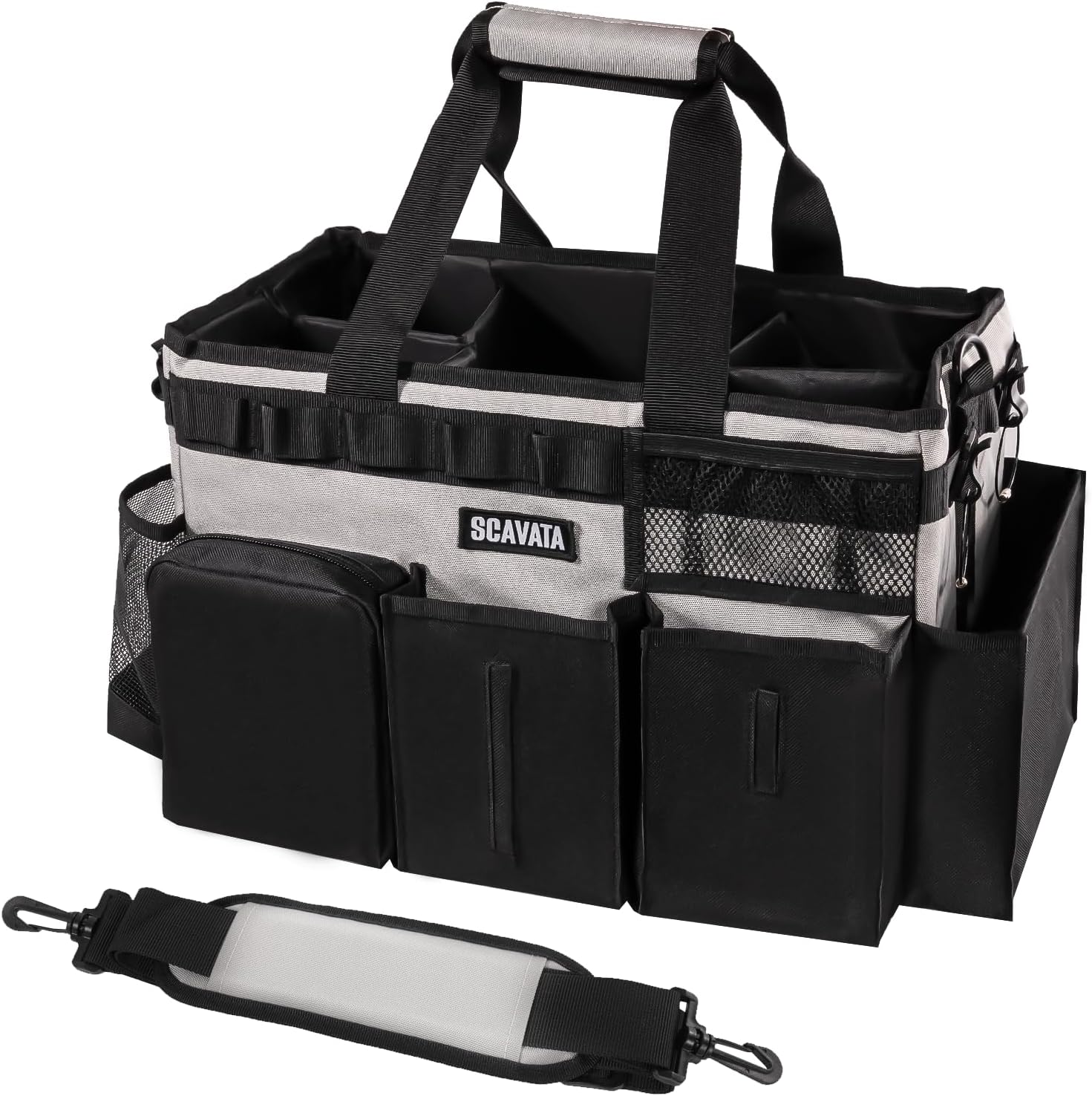 - High Quality Material: The portable cleaning organizer made of premium water-resistant 900D fabric material and reinforced PP boards which is durable and lightweight. The adjustable shoulder strap and waist strap are comfortable enough for carrying. Professional cleaning caddy organizer for cleaners & housekeepers