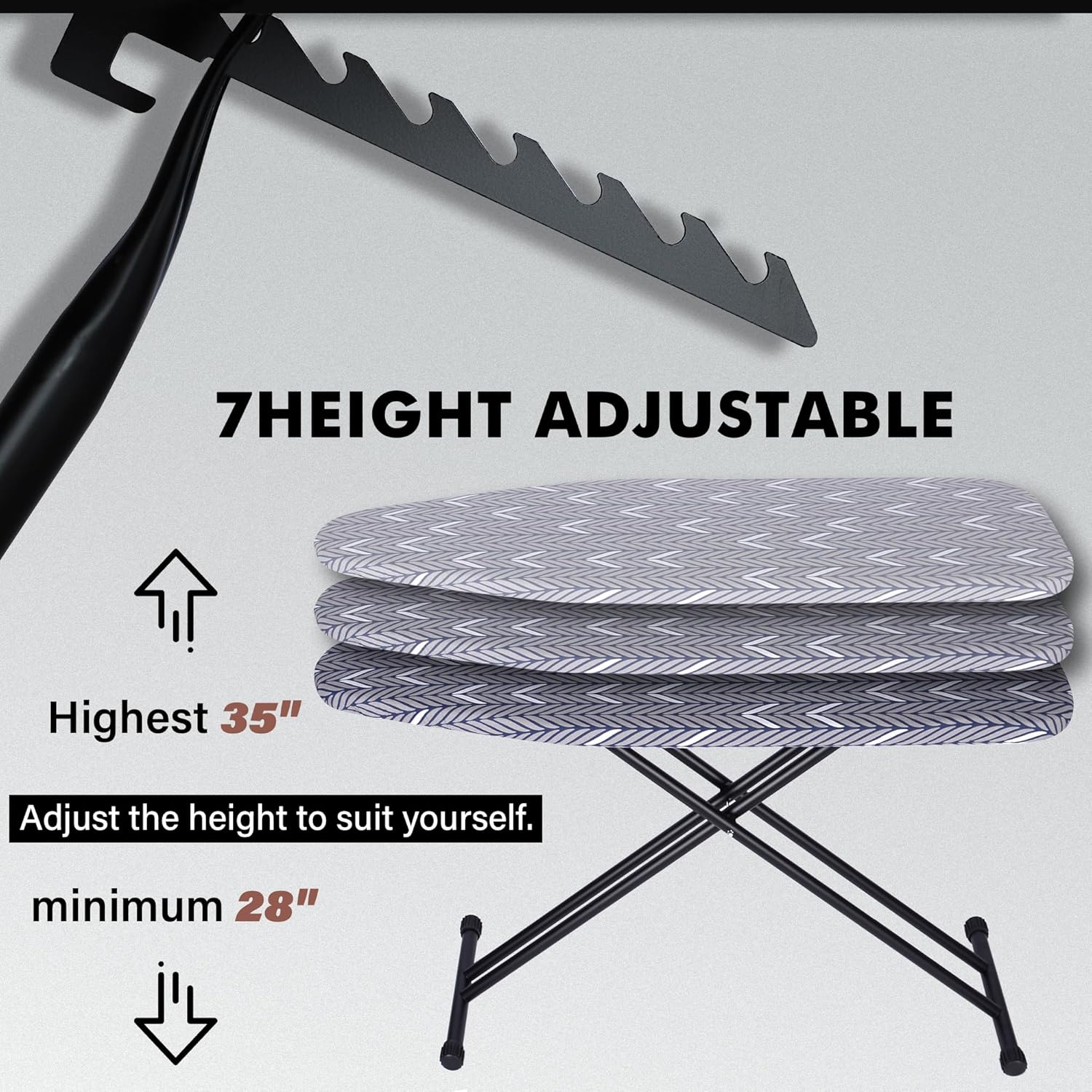 - Adjustable Height: The adjustable height feature allows you to customize the board to your preferred working height, ensuring ergonomic comfort while ironing.