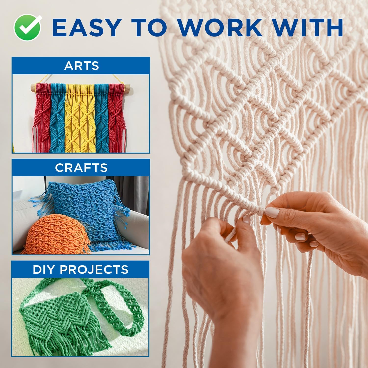 - IDEAL CRAFT ROPE: This flexible cotton string is perfect for crafting & DIY projects like making pet toys, basketball nets, lines for events’ decor and baby shower, macrame projects and revamping home decor. Can be used as a pinata rope for holidays.