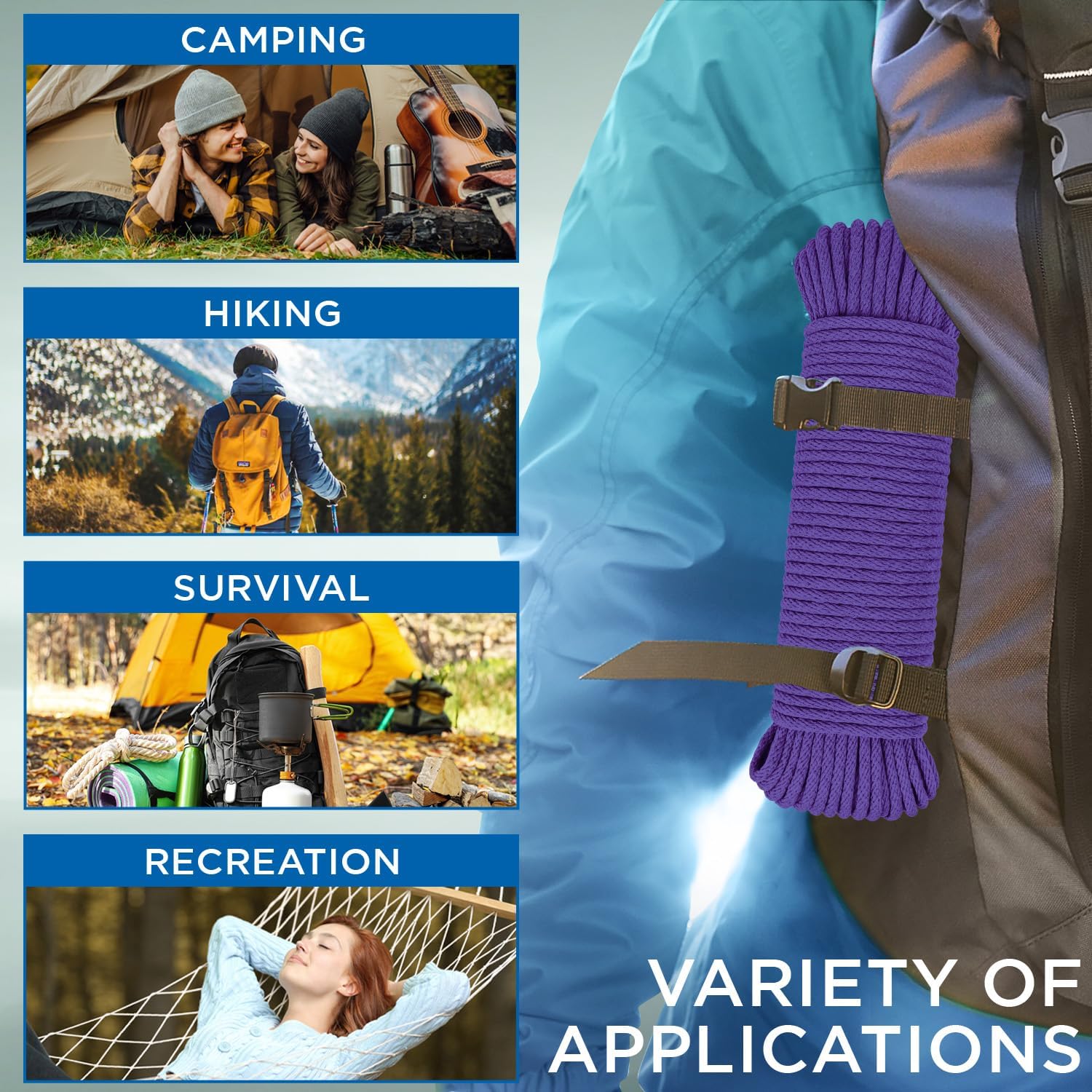 - COTTON ROPE: Color: Purple. Length: 100 feet. Width: 3/16 inch (5 mm). Quick-drying. All-purpose. Made from natural cotton with synthetic core. * Please note: the rope is not suitable to be used for wicks.
