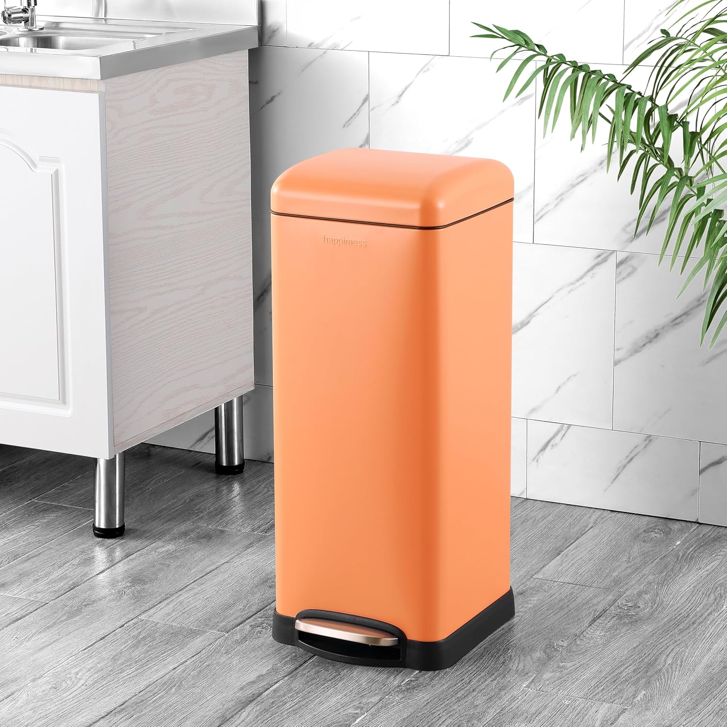 happimess HPM1007G Betty Retro 8-Gallon Step-Open Trash Can, Fingerprint Resistant, Modern, Minimalistic for Home, Kitchen, Laundry Room, Office, Bedroom, Bathroom, Carrot Cake