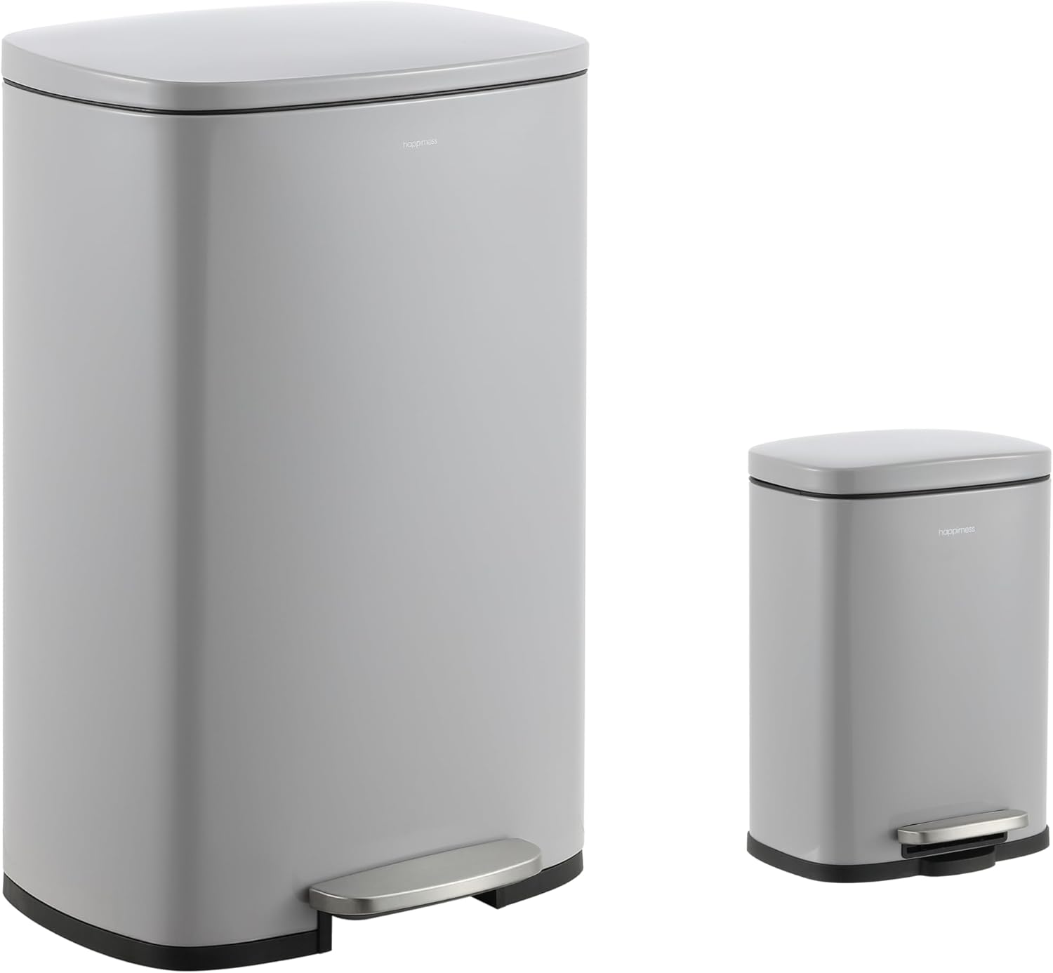 happimess HPM1006I Connor Rectangular 13-Gallon Trash Can with Soft-Close Lid and Free Mini Trash Can, Fingerprint Resistant, Modern, Minimalistic for Home, Kitchen, Office, Bathroom, Fog Gray