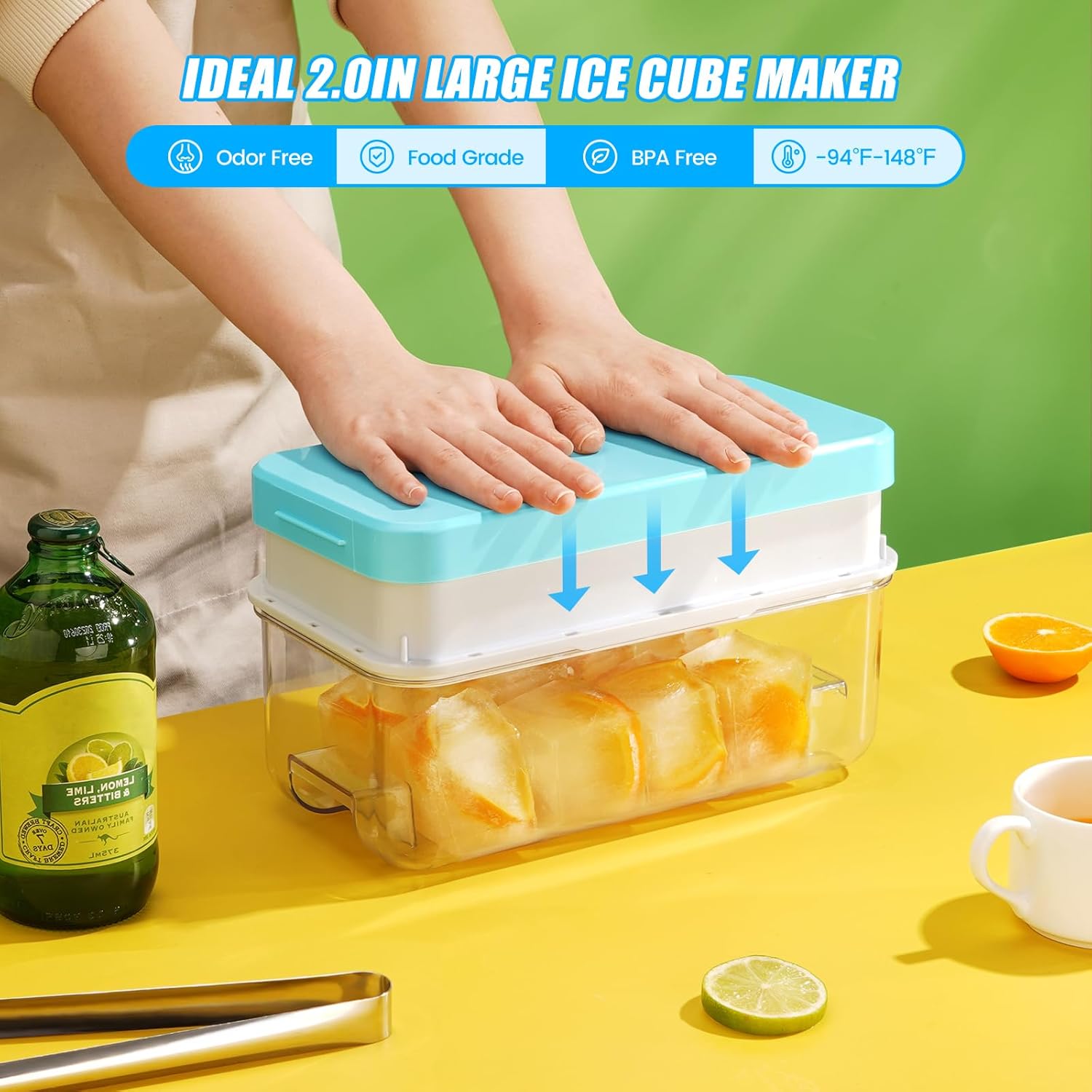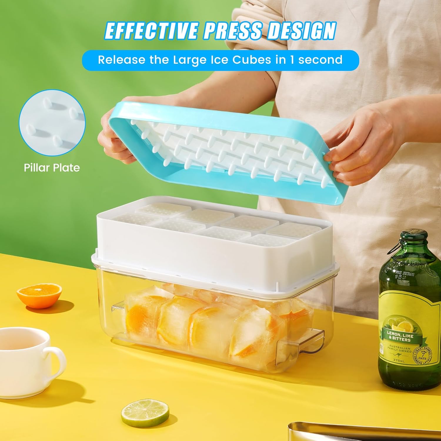 - Easy to Release:This Large ice cube tray uses a push type to quickly release ice cubes. Simply place the ice tray upside down on the ice bin, close the lid and press the middle of the lid with both hands to unmold easily. Do not overfill with water. Twisting the tray, or waiting a few minutes at room temperature is more conducive to releasing the ice.Our products are protected by patents under US D1,006,068 S & US D971,684 S