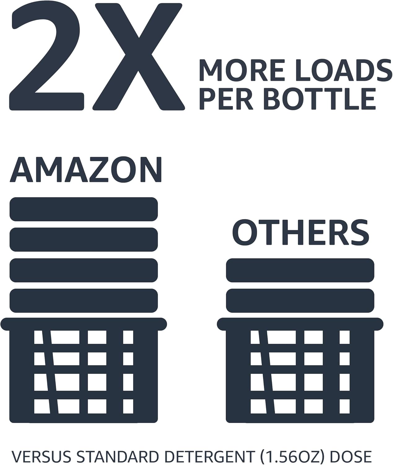 - Get 2x more loads per bottle with concentrated liquid laundry detergent from Amazon Basics, an Amazon Brand (versus a standard-concentrated detergent [1.56oz dose]).
