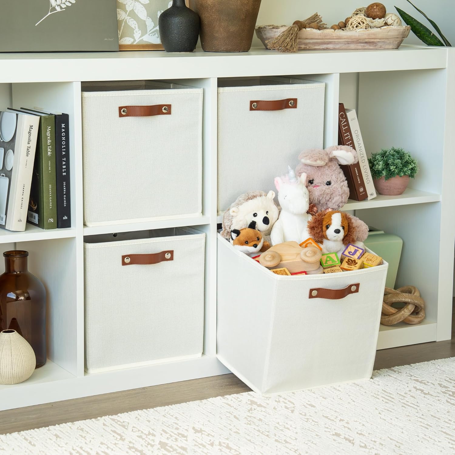 OrganiHaus White 12x12 Fabric Storage Bins - Set of 4, Cube Fabric Organizer Bins with Vegan Handles, Kallax Storage Cubes, Cubbies Organizer Boxes, 12Inch Cubic Baskets for Shelves