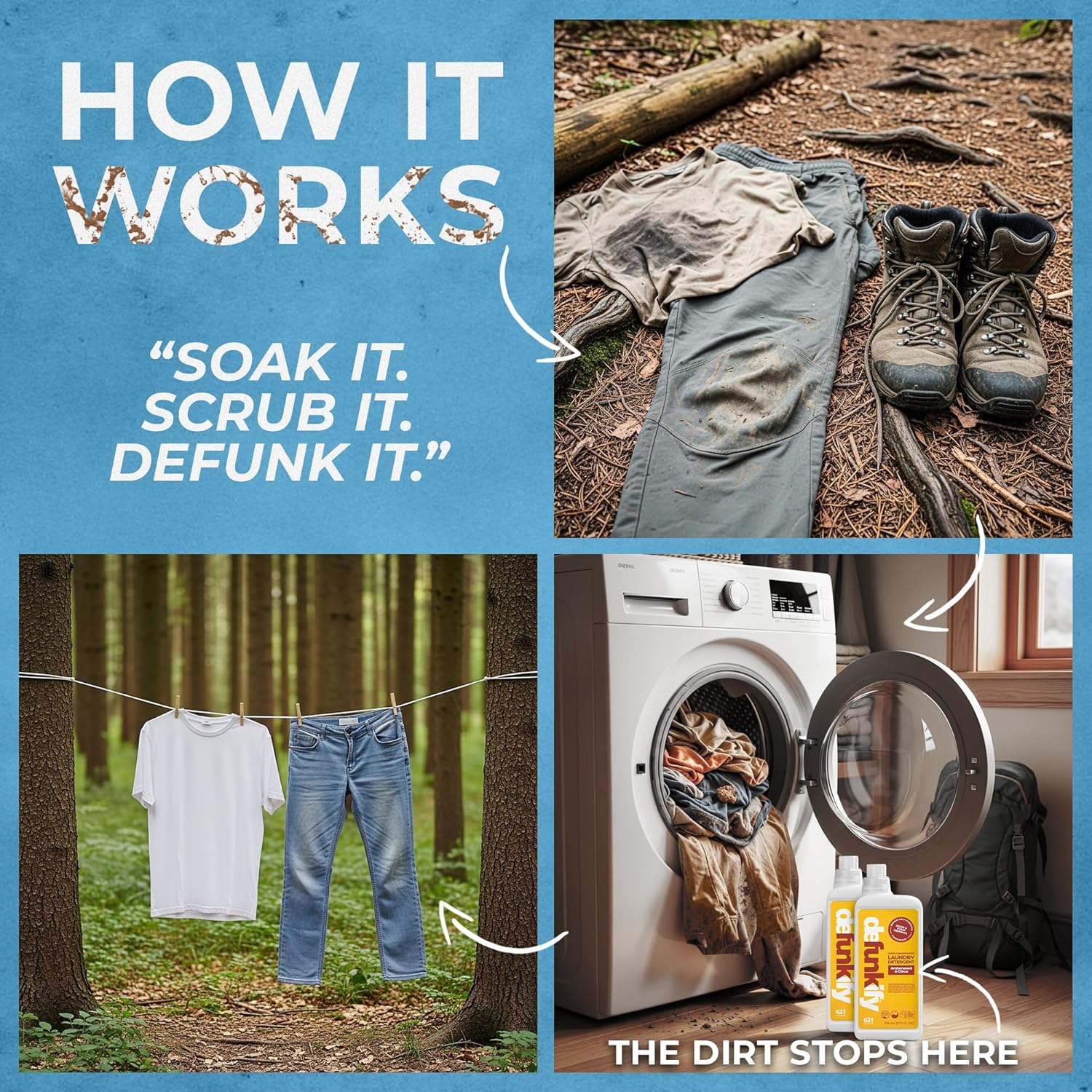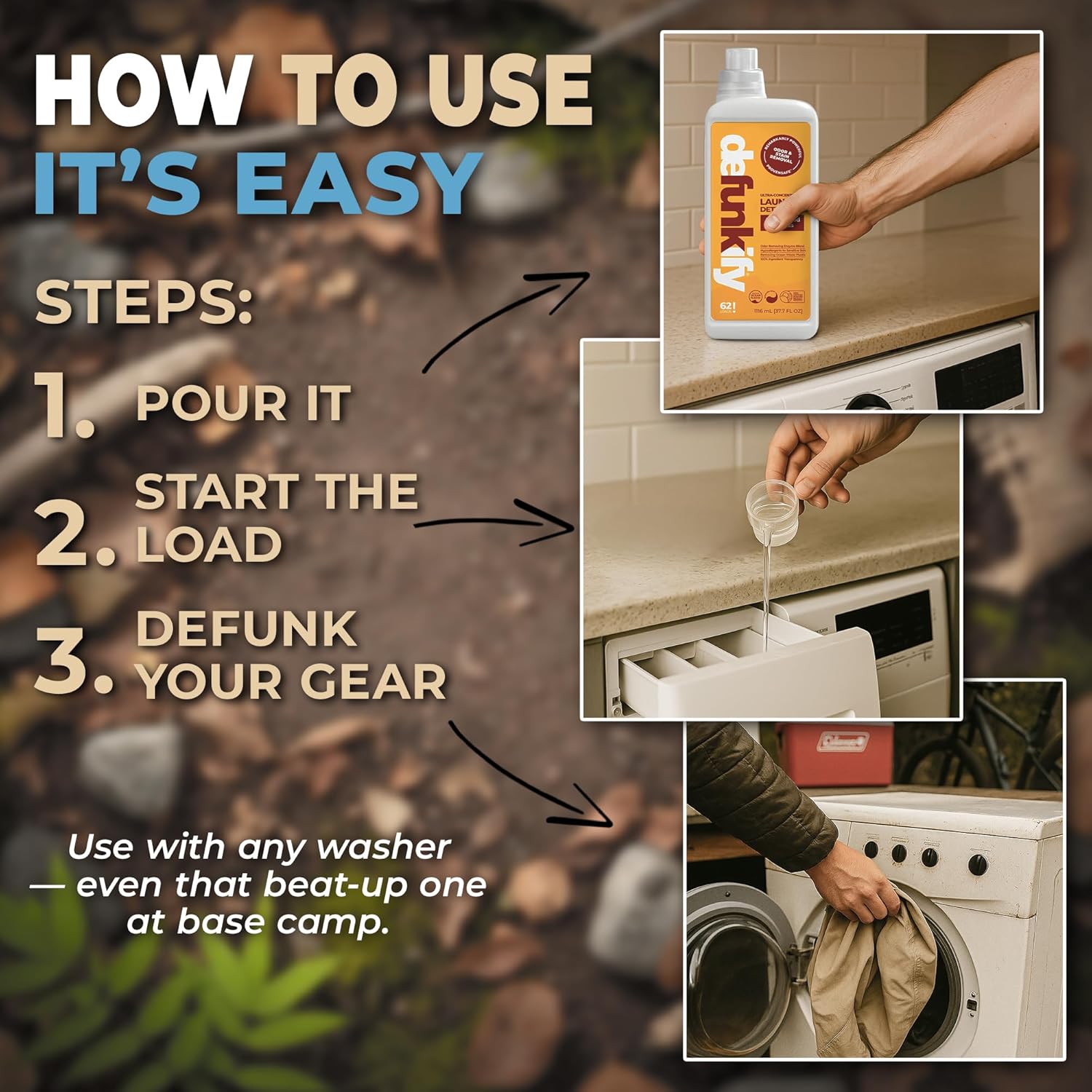 - š£š¼šš²šæš³šš¹ šš®šš»š±šæš š¦š¼š®š½: Inside one small capful of liquid detergent for laundry you get an industry leading stain remover, odor remover / eliminator & laundry stripper in one! While powerful, Defunkify's laundry detergent liquid remains safe for sensitive skin, all fabrics & clothing types (including activewear & outdoor gear), & is environmentally friendly & eco-conscious w/ our patented 'ProvenSafe' process & formula. Pack includes 2-37.7 FlOz bottles/ 124 Loads of detergent.
