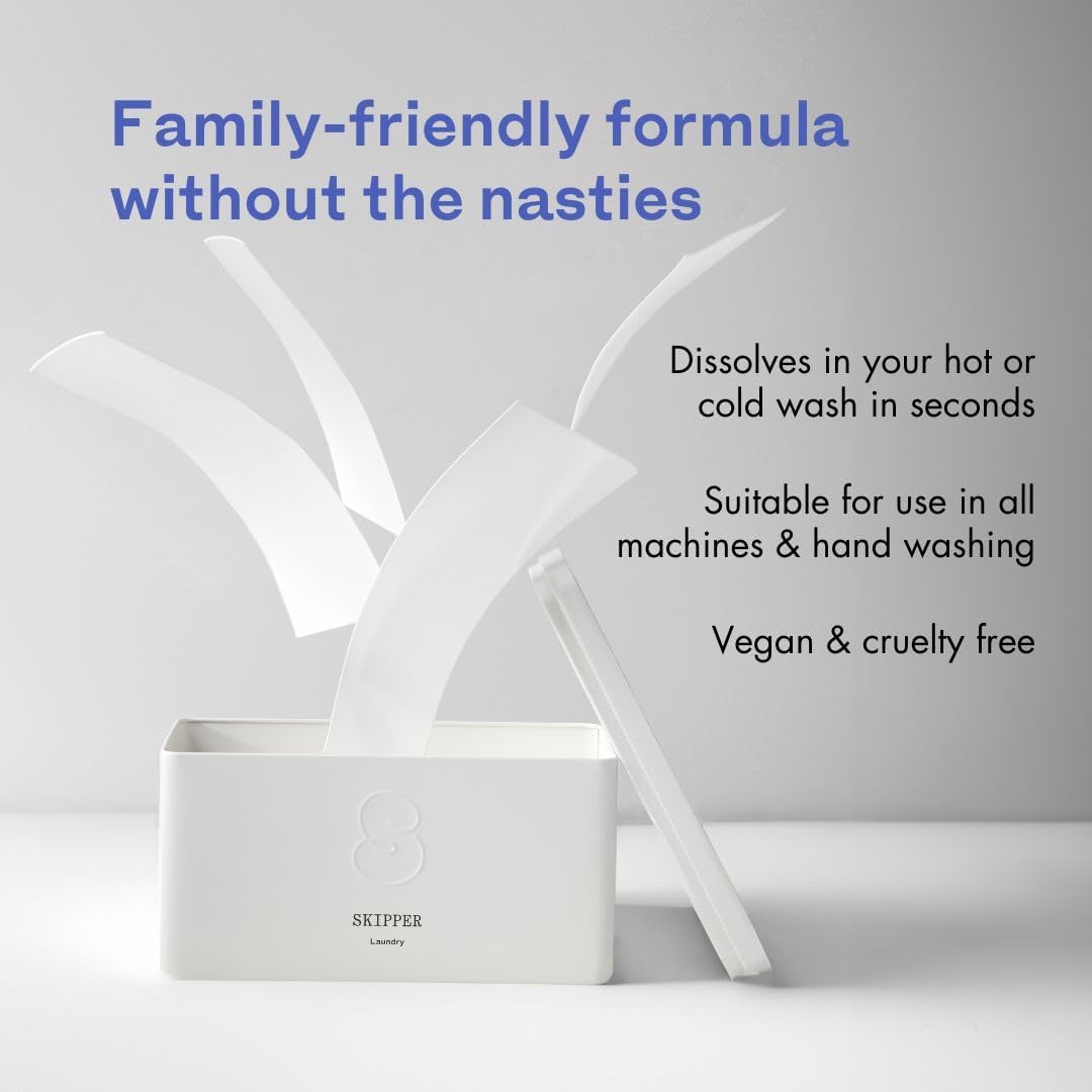 Skipper 50% LARGER Laundry Detergent Sheets Starter Kit (120 sheets / 240 loads) + Storage Tin - Orange Blossom