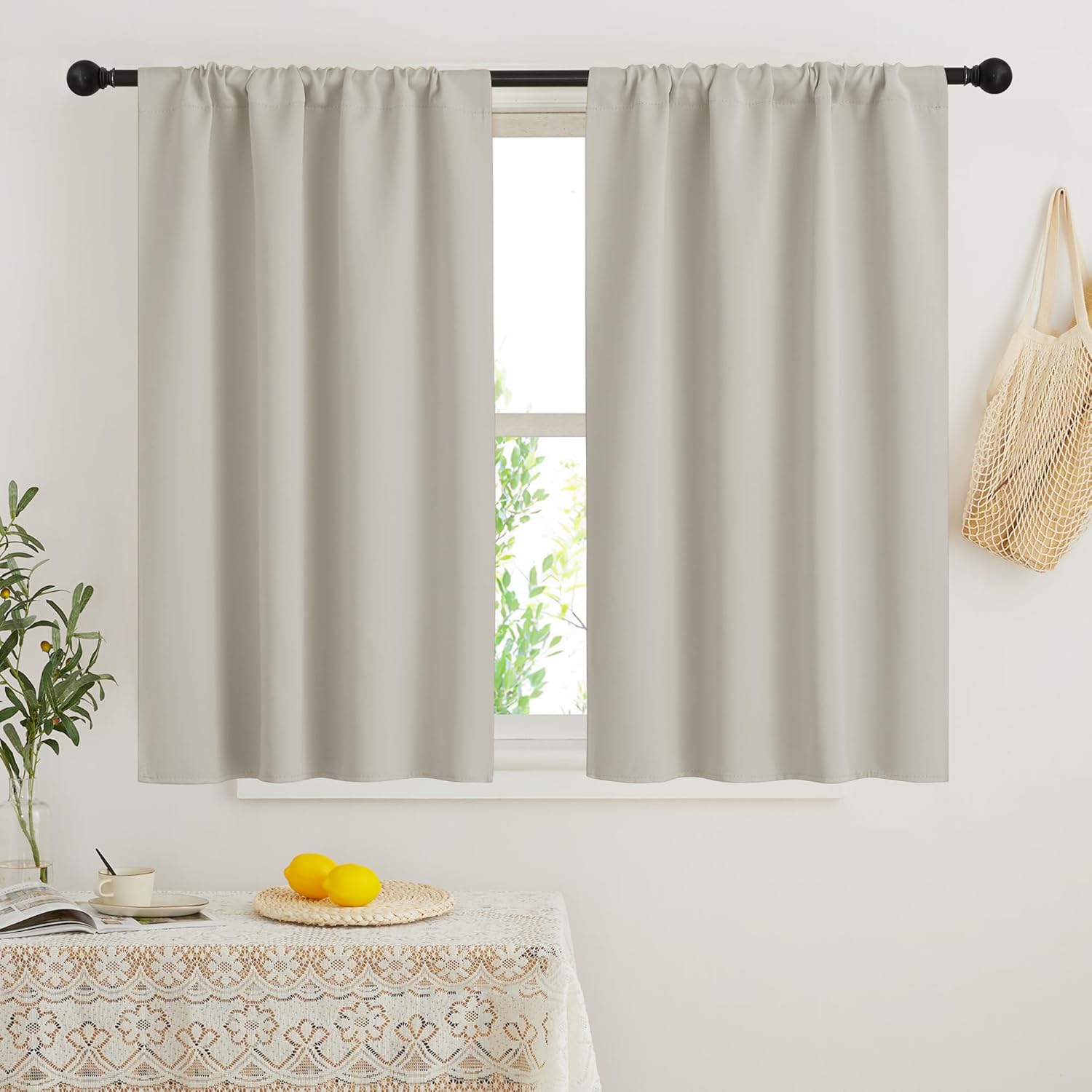 RYB HOME Blackout Short Cafe Curtains, Privacy Light Block Small Window Curtains for Bedroom Kitchen Basement Dining Classroom, W 34 x L 45 inches, Natural, 2 Panels