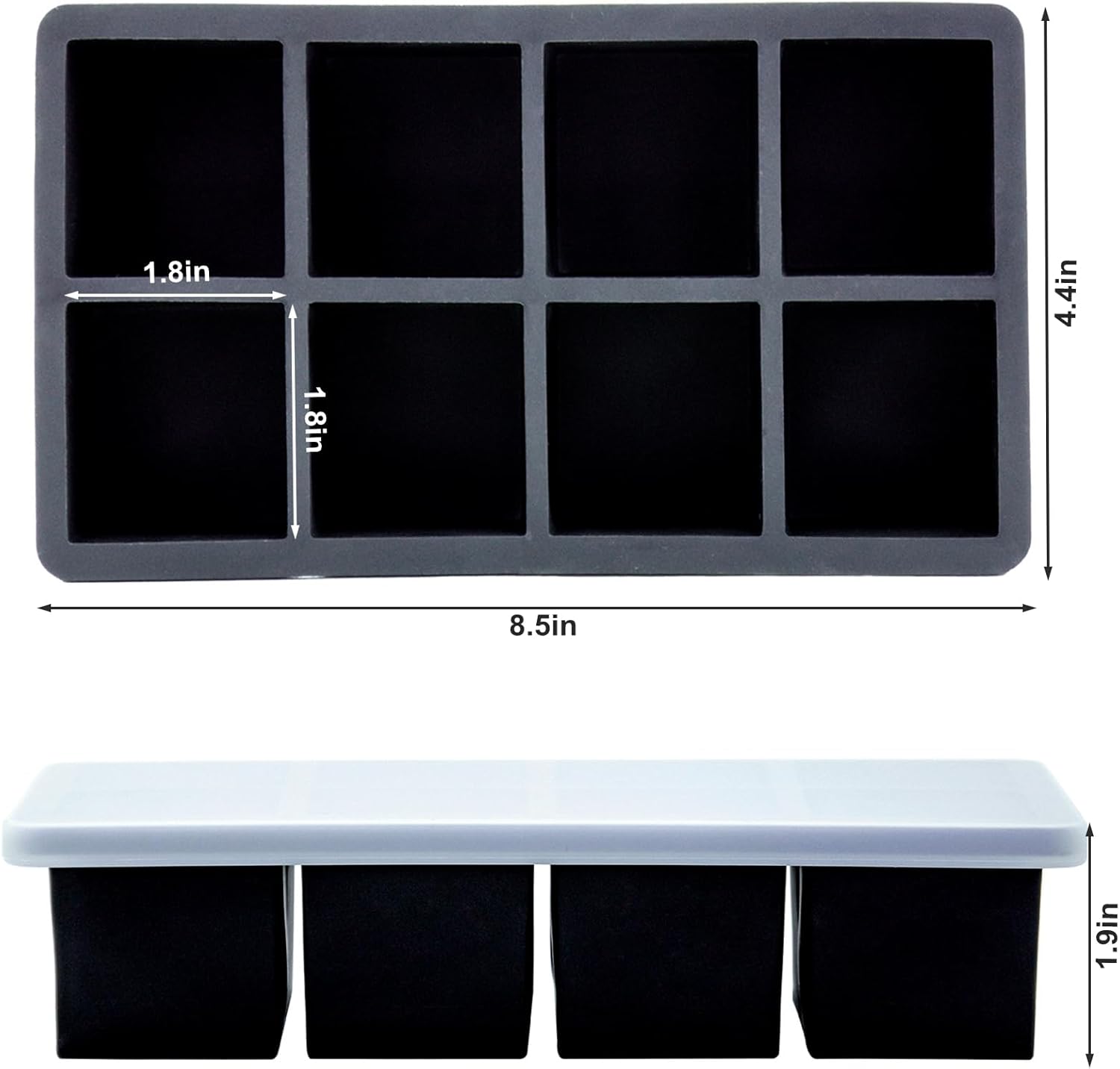 - Large Square Ice Cubes:Square ice tray allows you to make 8 large 2 inch ice cubes each time.With this perfect size and classic shapes, big ice melts/dilutes more slowly,keep yours drinks tasting better, for longer.Use them to chilling your Old Fashioned,Scotch,Bourbon, Blended Whiskey or Craft Cocktails.