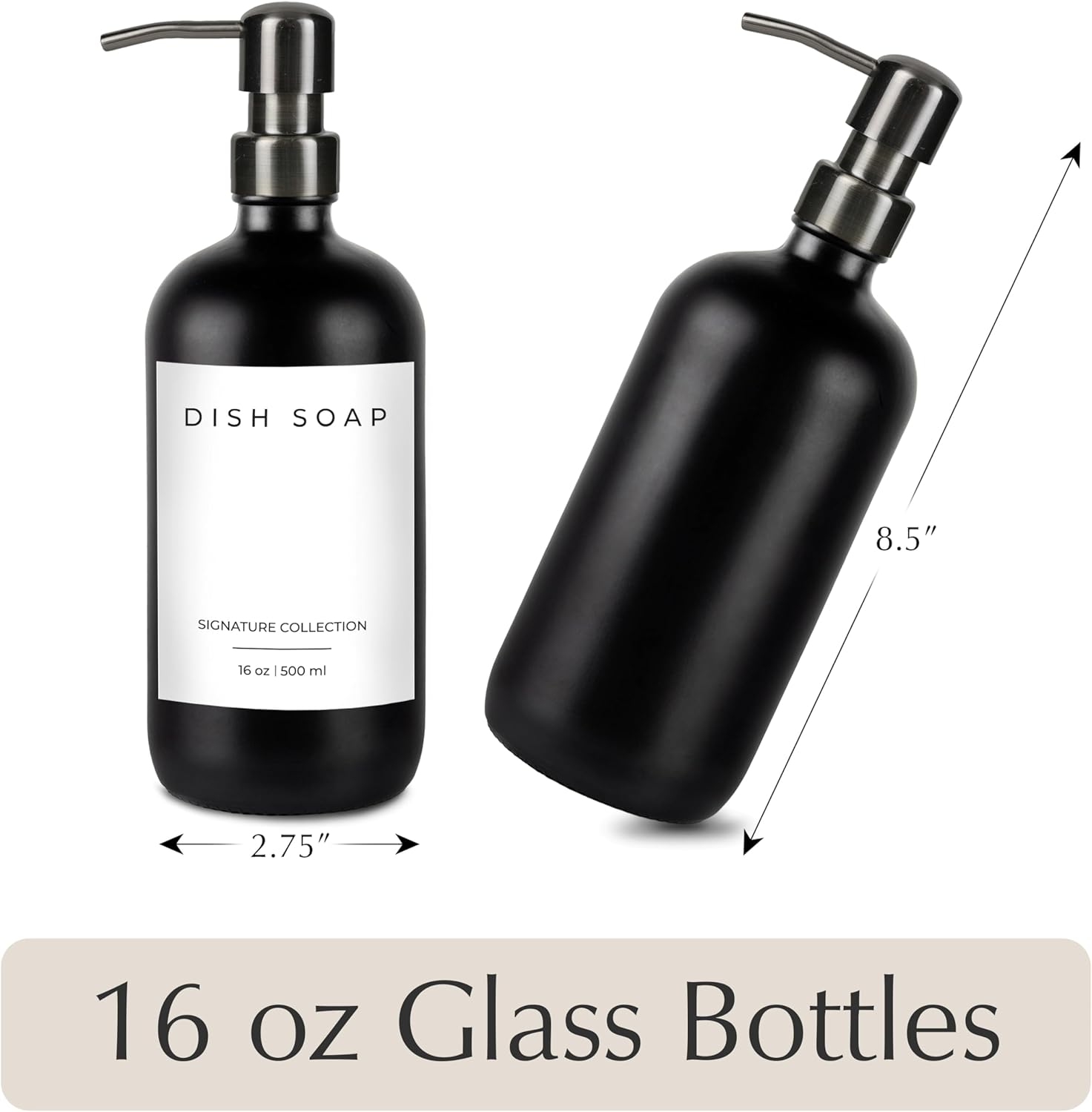 - ✅ KITCHEN OR BATHROOM USE: While other dispensers peel over time, our dispensers are made of premium quality and last far longer. The bathroom soap dispensers and kitchen soap dispenser set are 16 ounces and are refillable, requiring fewer refills. Ideal for using as a bathroom soap dispenser set and the glass soap dispenser with pumps boast 2 cc stainless steel pumps.