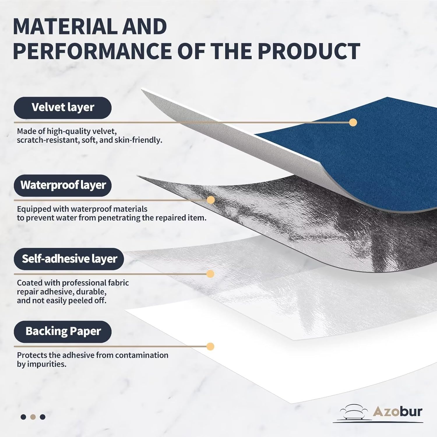 Azobur Velvet Patch,Self-Adhesive Rectangular Flannel Fabric Patch,Multicolor Available Anti Scratch Velvet 8X11 Inch Peel and Stick for Sofas, Automotive Interior, Handbags,and Pillow (Blue)