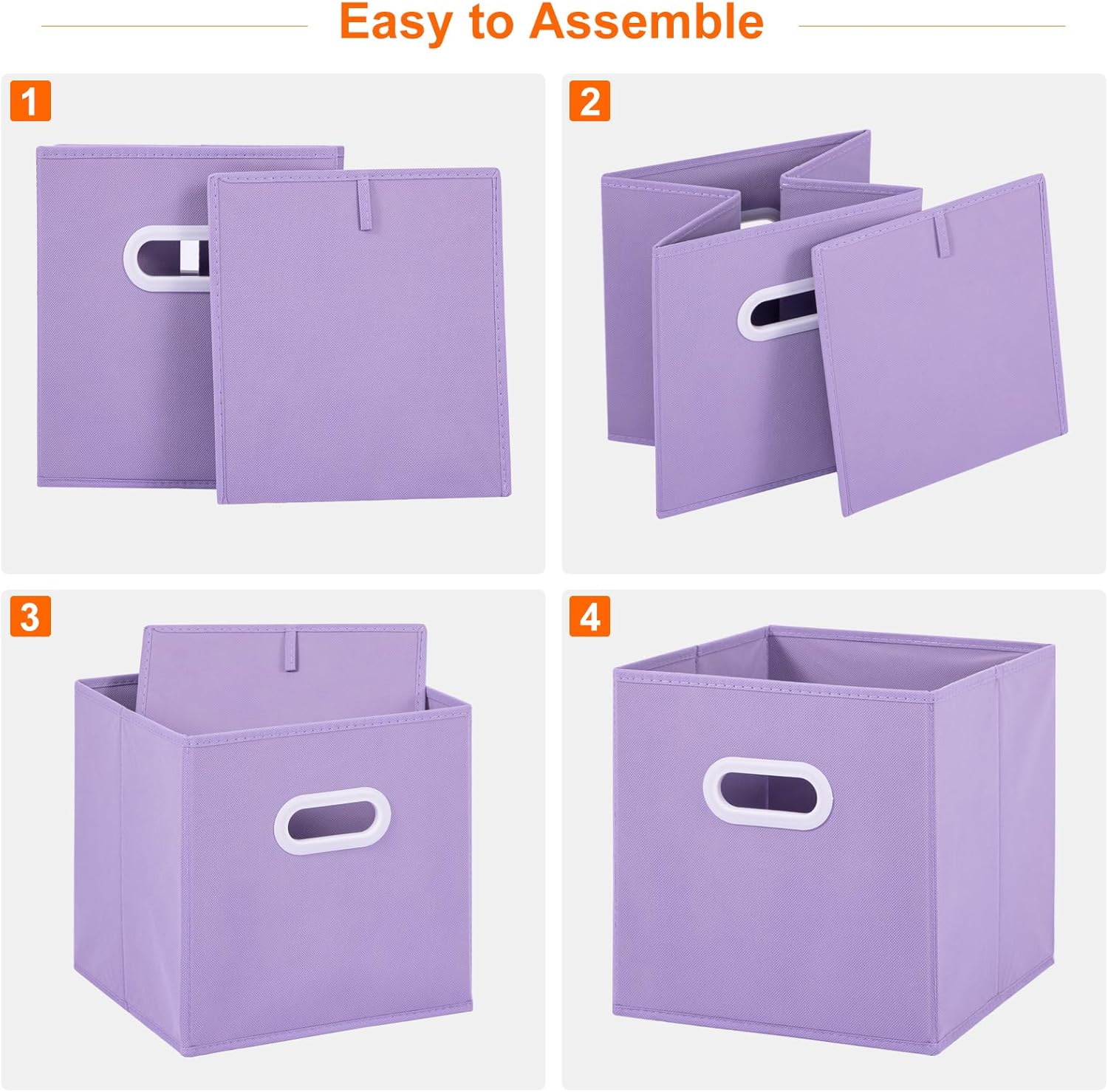 - Strong Quality: The size of the storage box is 10.6" L x 10.6" W x 11" H. The inside is 2mm thickness cardboard, and the outside is 100% non-woven fabric to ensure that they stand upright, and with strong handle in the front of each box for easy grasping and transportation.