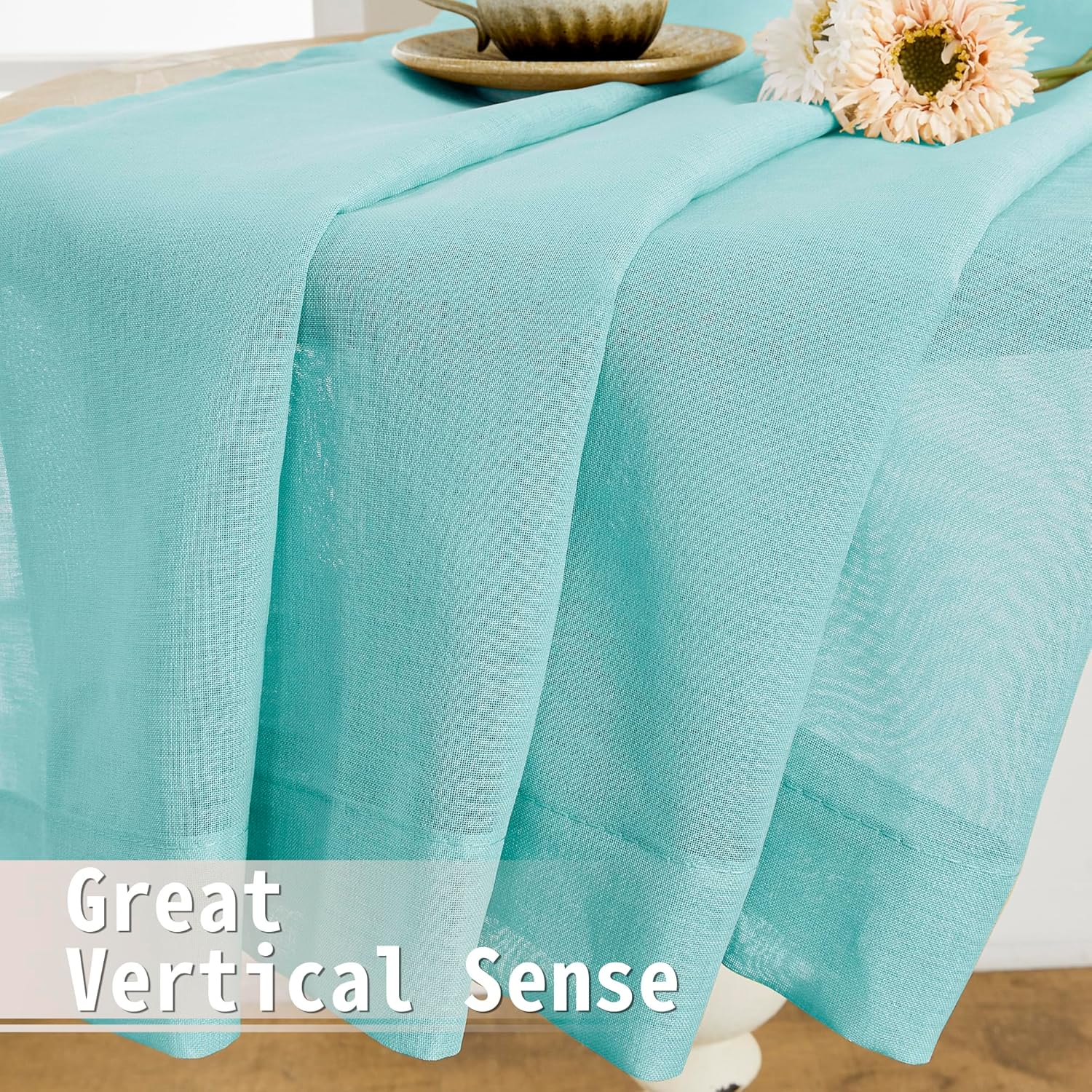 - Light Filtering: The linen look crystal blue door sheer curtain can allow the right amount of natural light through to bring your room a hazy and softer vision, keep you away from someone’s glance from outside and provide you some privacy.