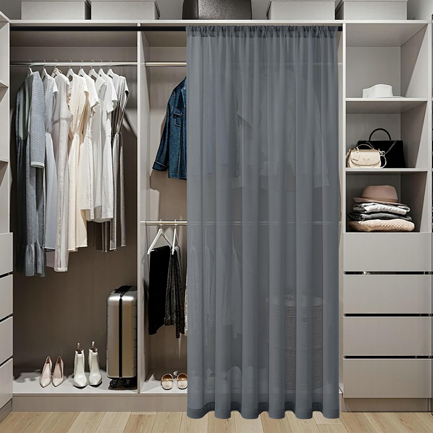 Tollpiz Sheer Door Curtains Closet Linen Textured Curtains Sheer Doorway Light Filtering Voile Rod French Door Pocket Curtain Patio Glass Door, 25 x 72 inches Long, Dark Grey, Set of 1 Panel