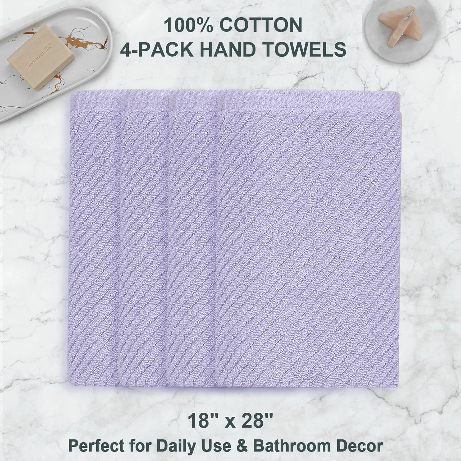 VOOVA & MOVAS Purple Hand Towels, 4PC Large 18"x 28" - 100% Cotton | Lightweight | Thick | Quick Dry | Soft | Absorbent, Hand Towels for Bathroom, Bathroom Essentials, Lavender