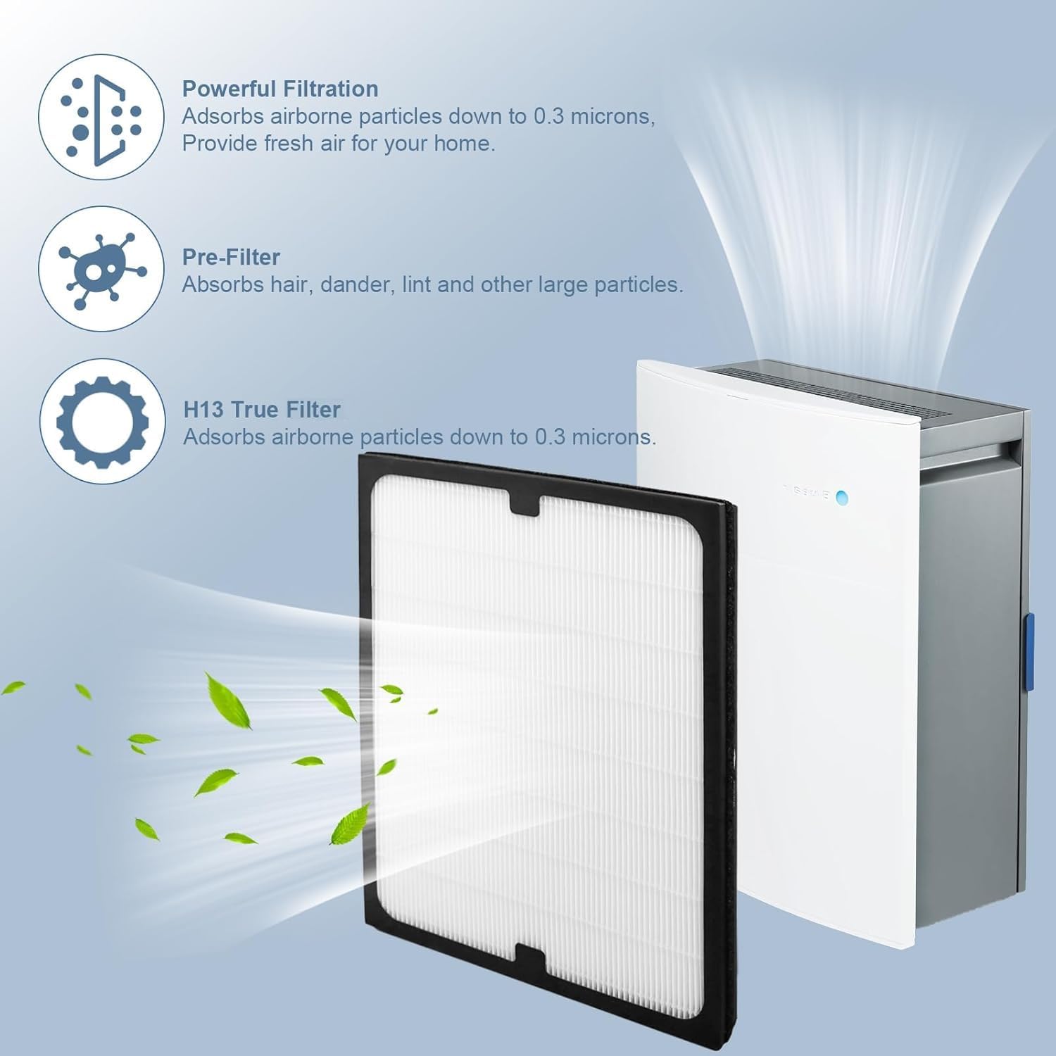 - 3-in-1 Efficient Filtration:Blue Classic 200 Series Particle Filter adopts double-layer filtration technology, which absorbs pet plush、household waste, volatile organic compounds and smoke components through pre filters and carbon filters, providing fresh air for your family.