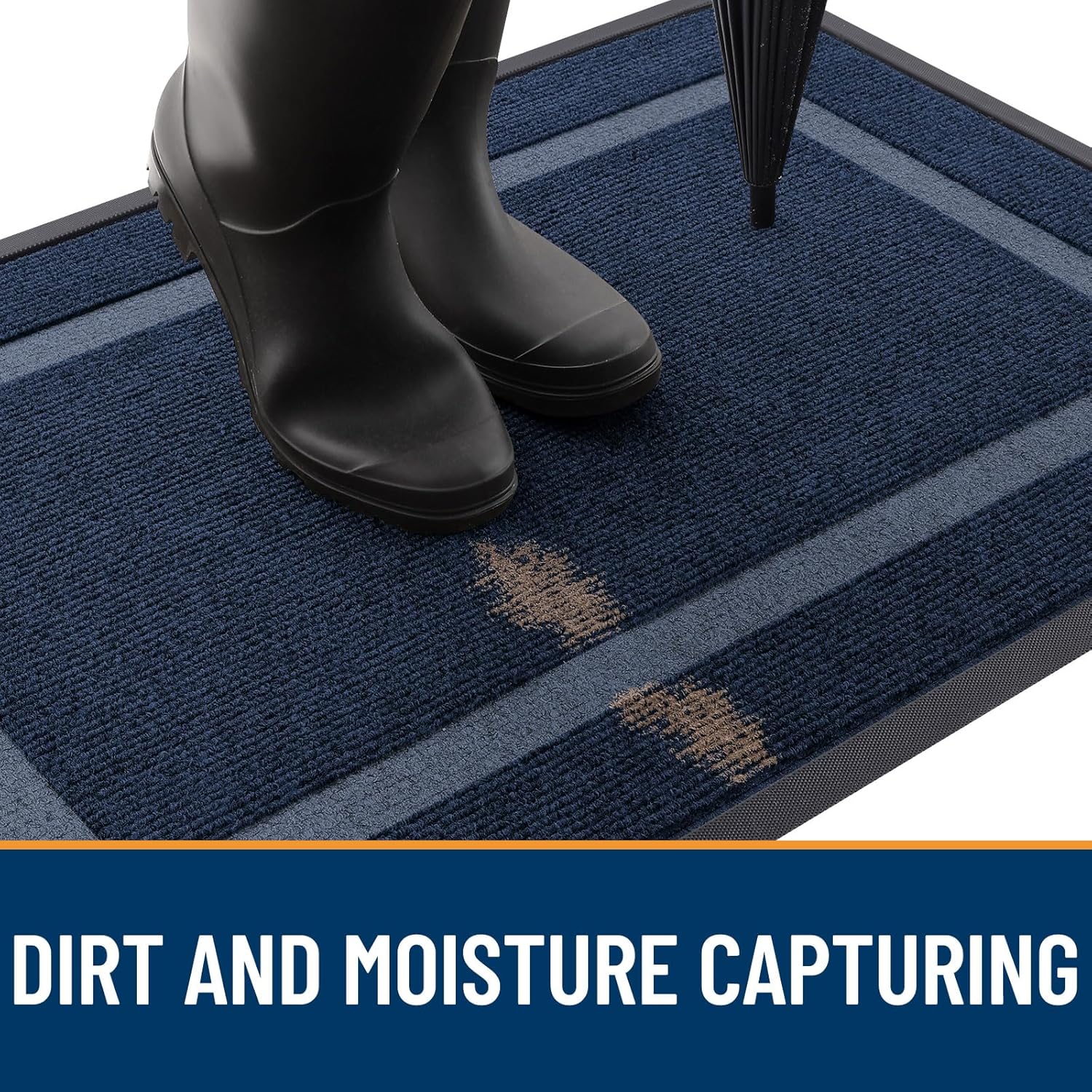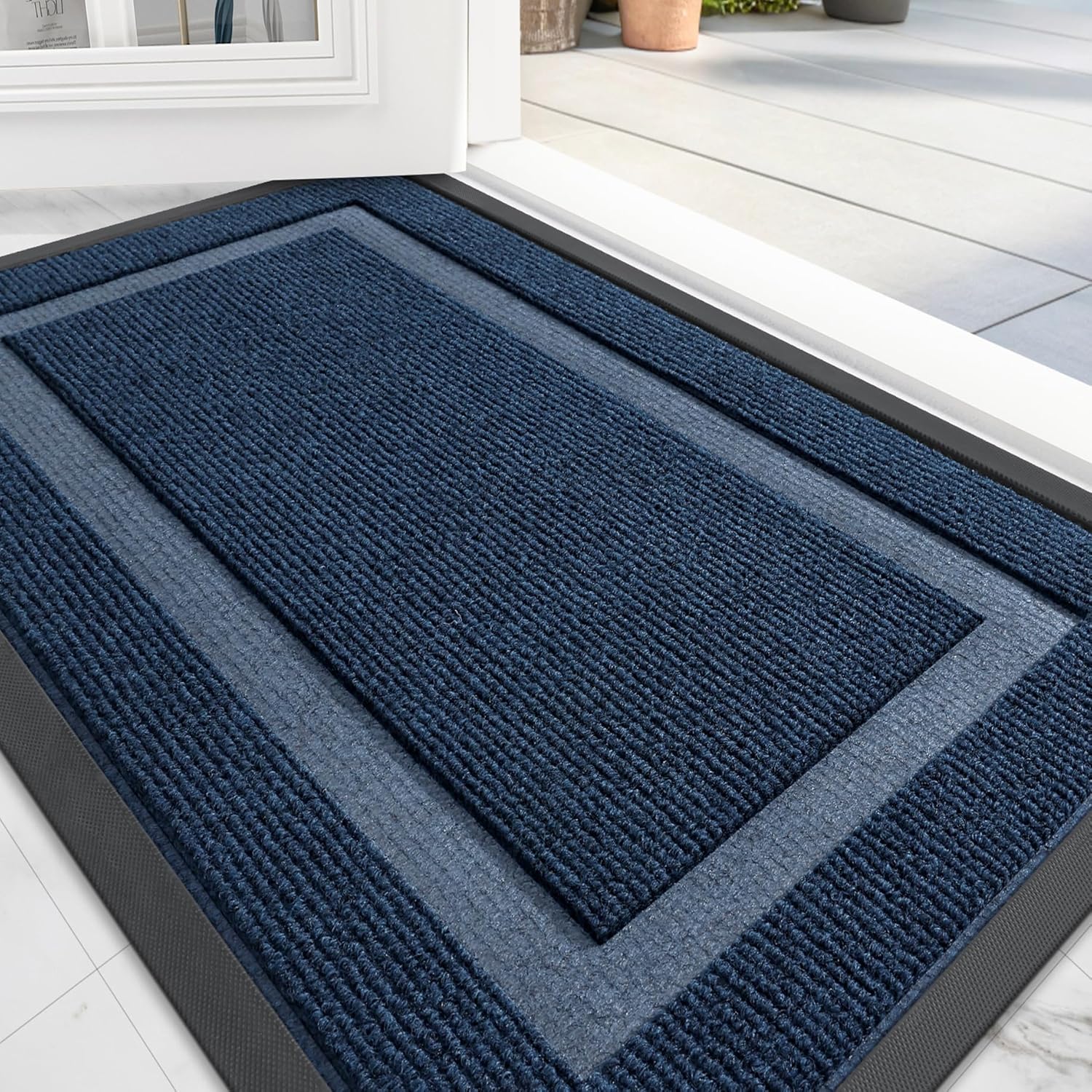 OLANLY Front Door Mat Indoor Outdoor Entrance, Waterproof All-Season, All-Weather Doormat, Sturdy Natural Rubber, Fade Resistant, Low Profile, Easy Clean Patio Porch Entryway Mat, 47x24, Blue