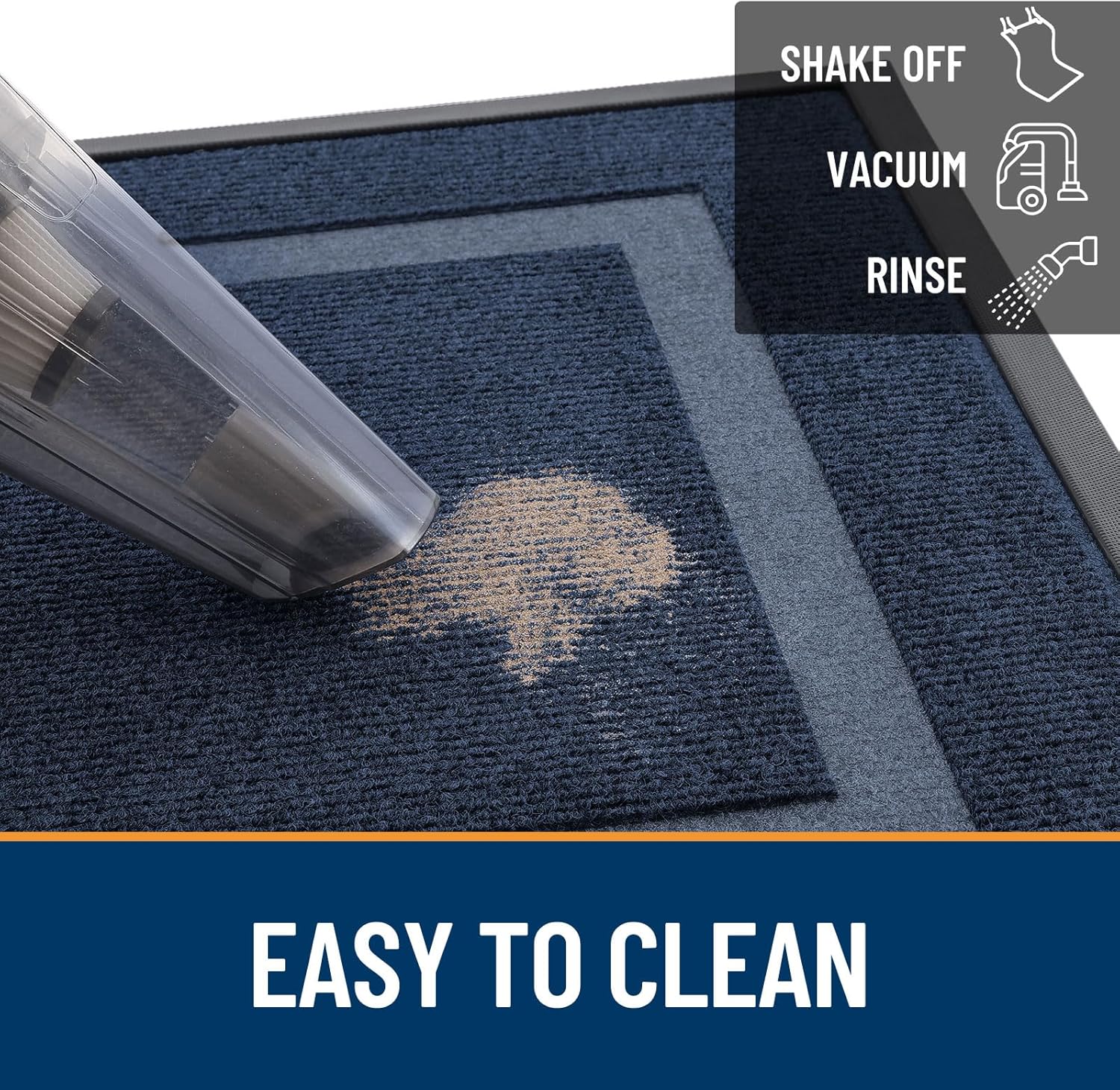- [EASY TO CLEAN] The OLANLY front door mat is designed for quick and effective cleaning using a vacuum or traditional broom cleaning methods. Additionally, tapping and shaking the back of the doormat helps remove residual debris. For a deeper clean, rinse it with a garden hose and hang the mat in a ventilated place or dry it in a dryer. This versatile cleaning method ensures that your doormat stays clean and tidy, ready to welcome guests.