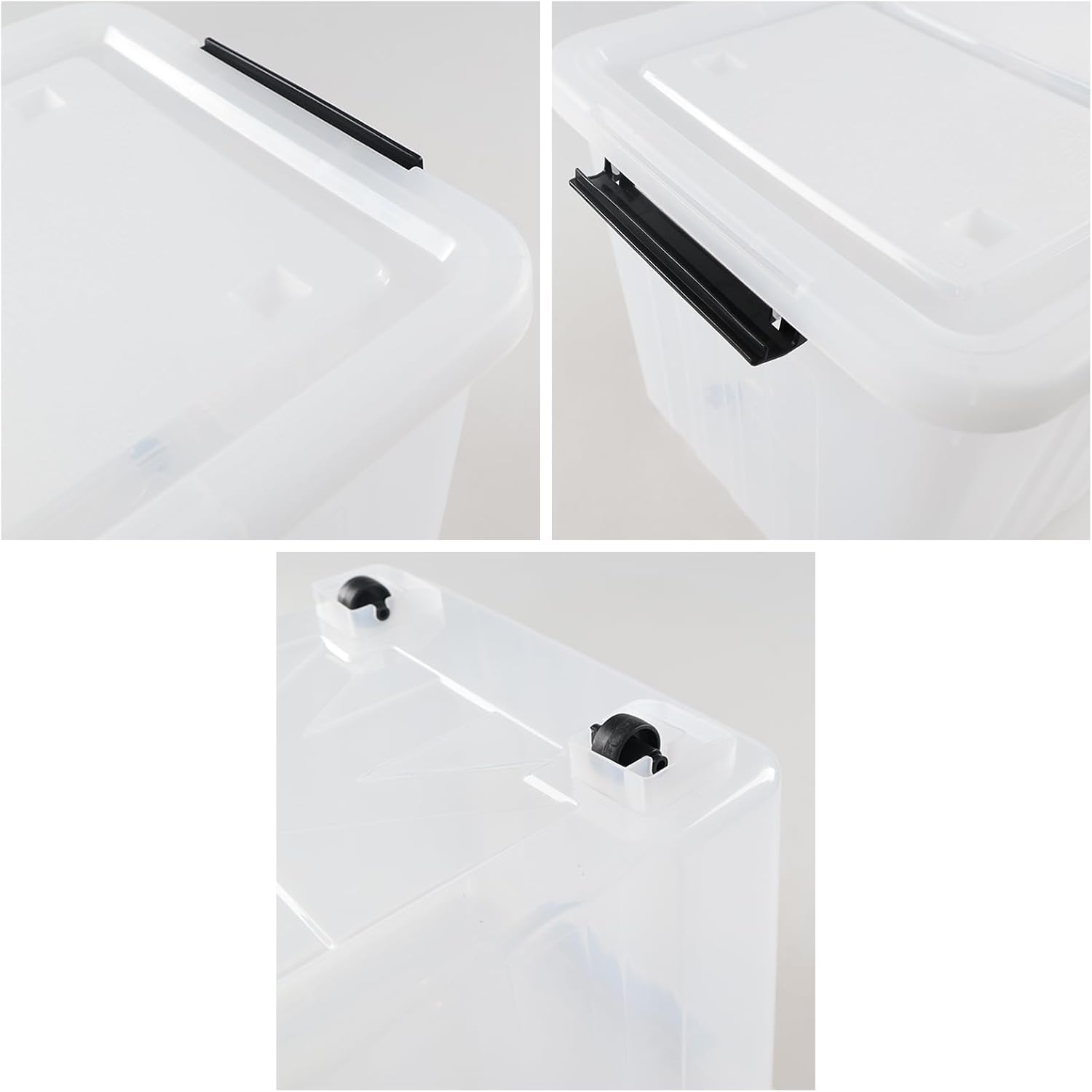 4-Pack 42 L Clear Plastic Storage Container Bin with Lids and Latch Buckle, Clear Storage Latch Box/Bin with Wheels