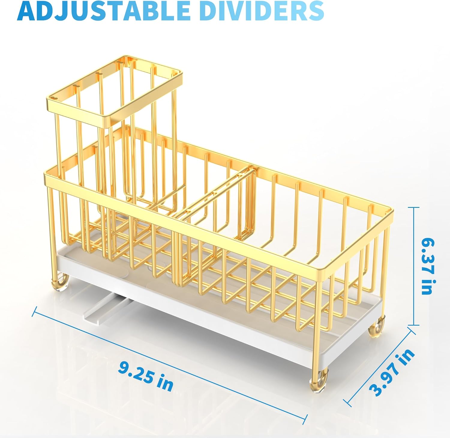 Cisily Gold Sponge Holder for Kitchen Sink, Sink Caddy Organizer with High Brush Holder, Kitchen Countertop Organizers and Storage Essentials, Rustproof 304 Stainless Steel, Soap Dispenser Organize