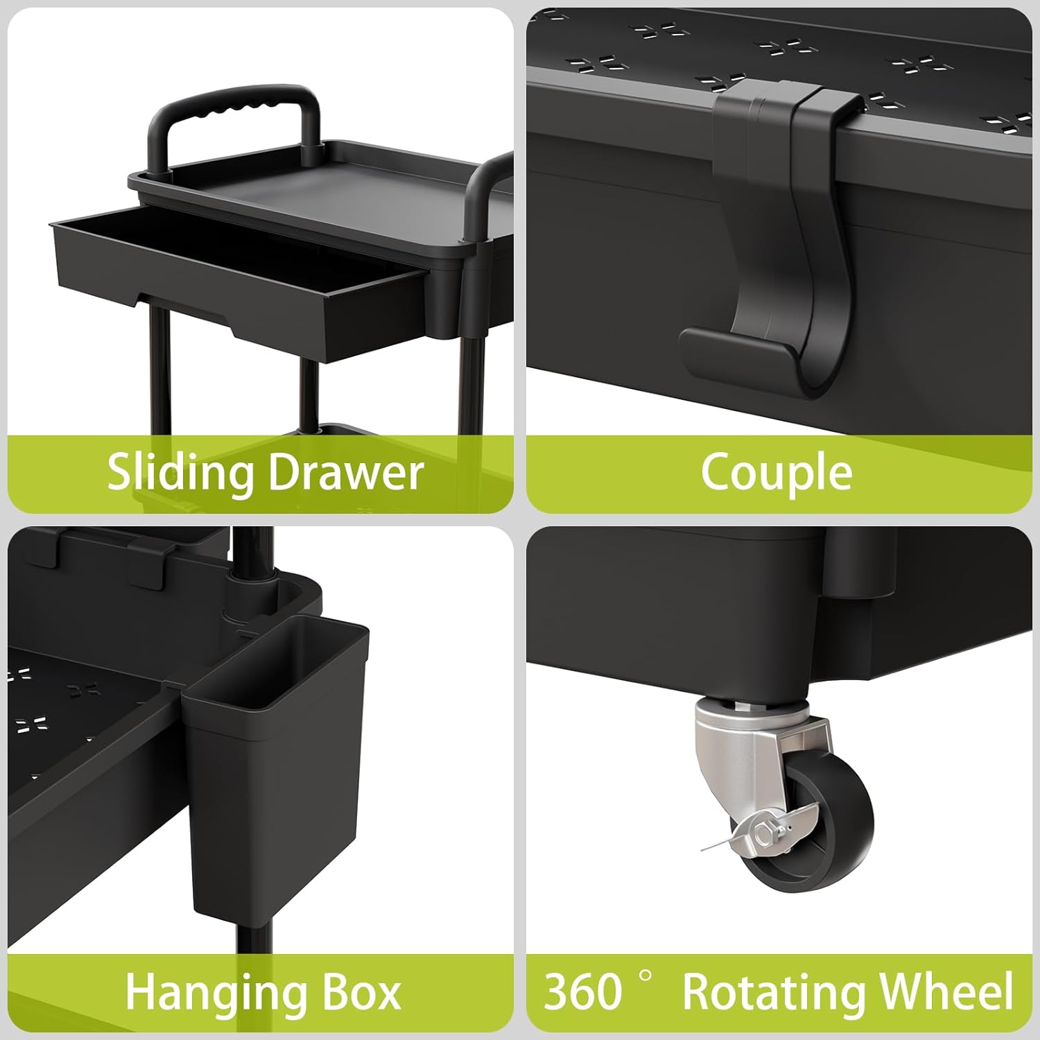 - 【Movable & Heavy Duty】 - This utility cart has 4 caster wheels that rotate 360° for easy maneuverability. Two lockable wheels ensure stability when stationary, while rubber construction on all wheels guarantees silent movement and protects floors from scratches.